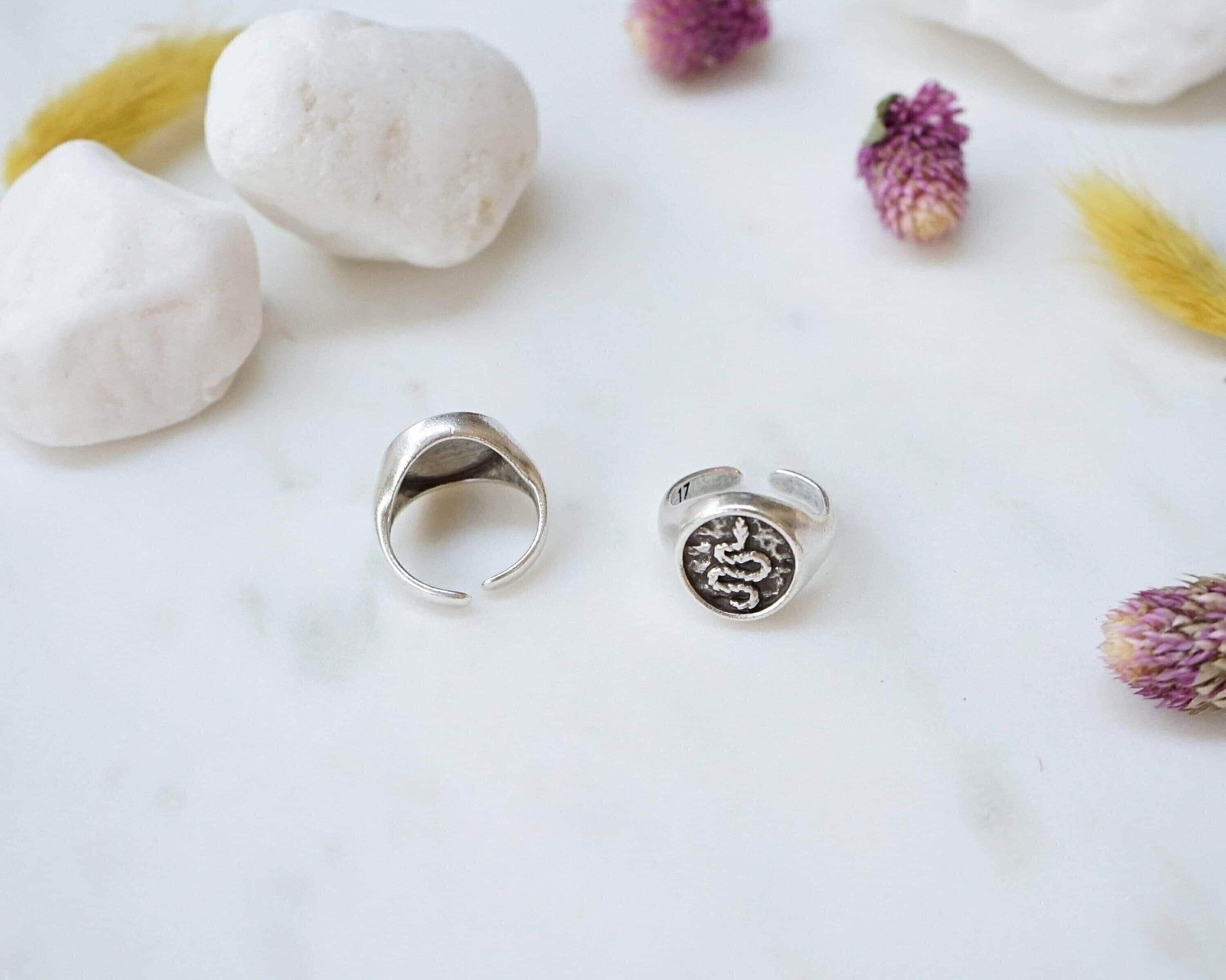 Silver Snake Stamp Signet Ring