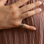 Inspired by the traditional signet silhouette, this piece features a smooth 16mm surface that catches the light beautifully. Perfect for those who love statement yet minimal jewelry, it can be worn alone for a sleek look or styled with slim bands for contrast.