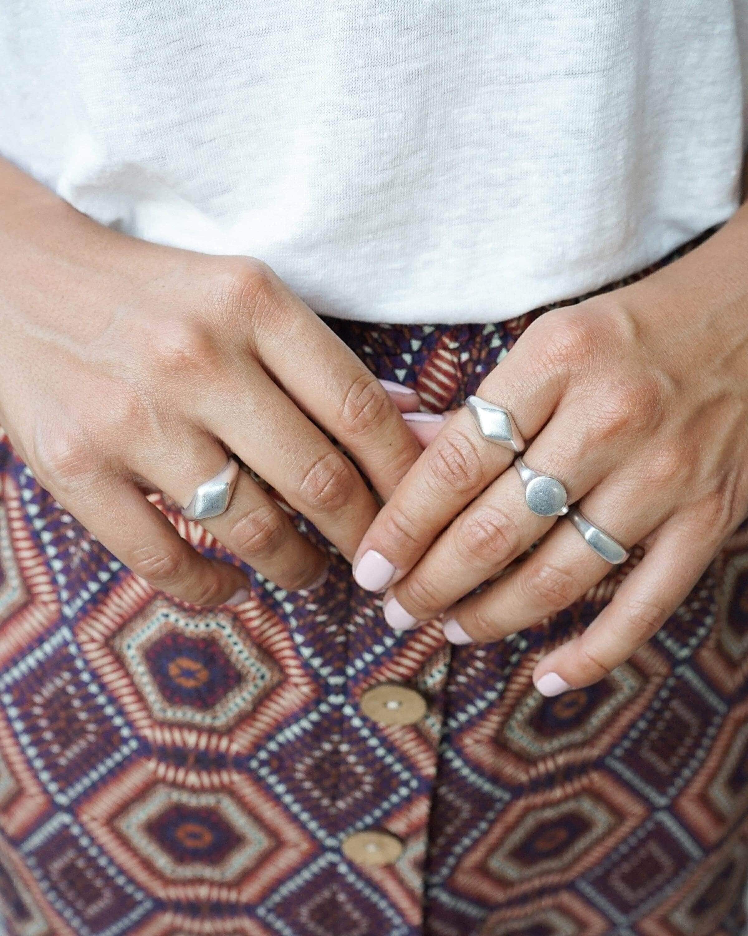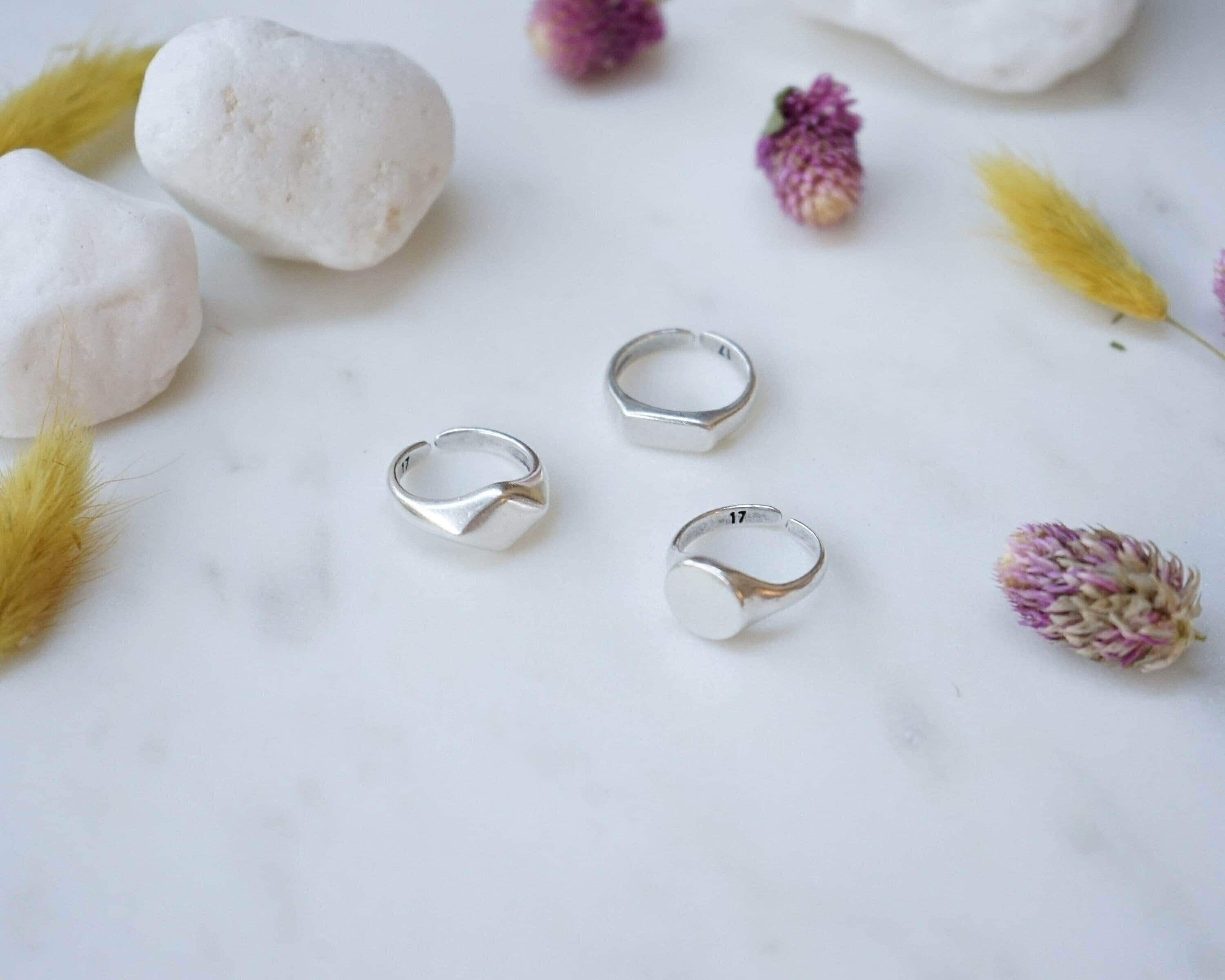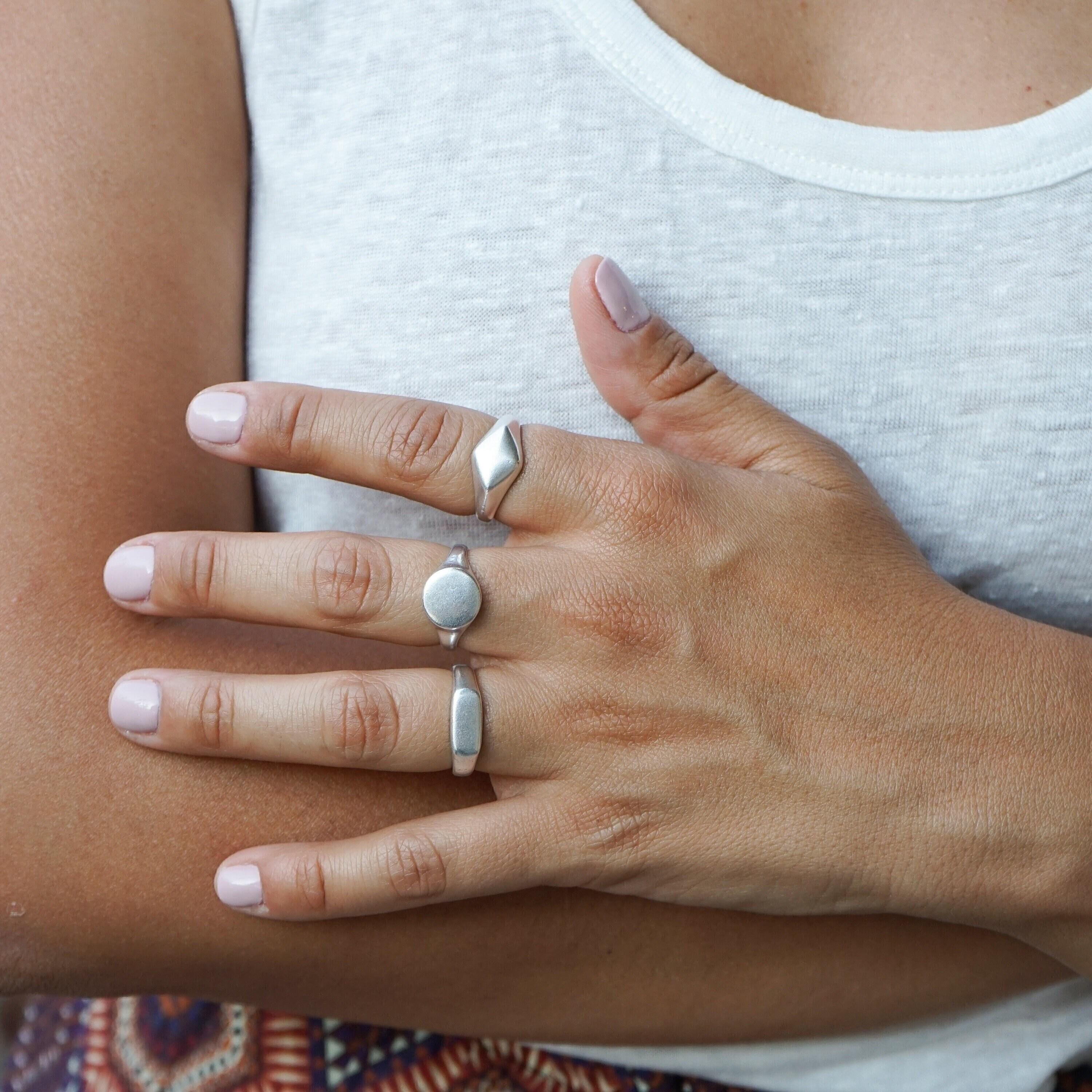 This classic silver signet ring is a staple piece that can elevate any outfit while showcasing your individual style. Make it a part of your jewelry rotation today.