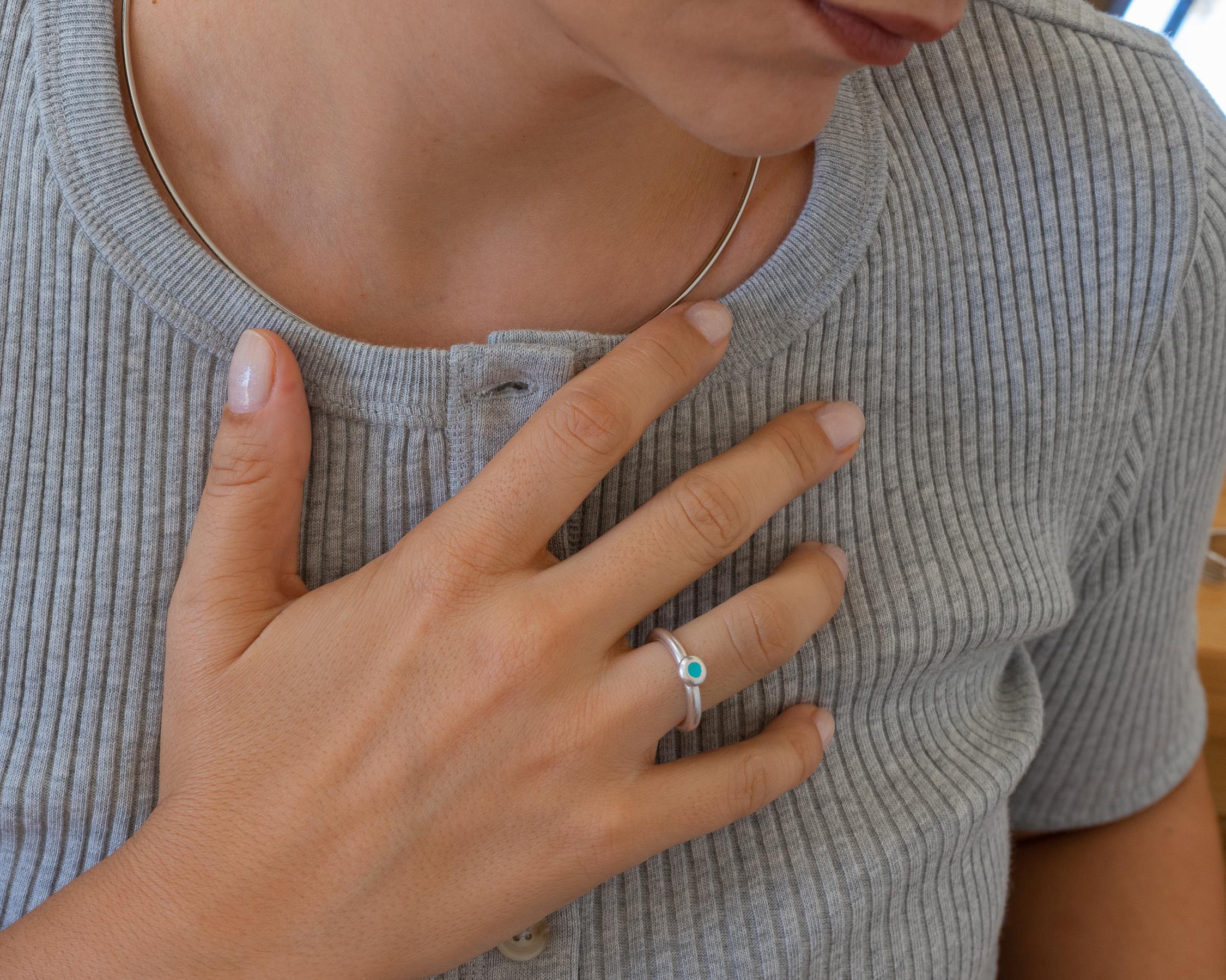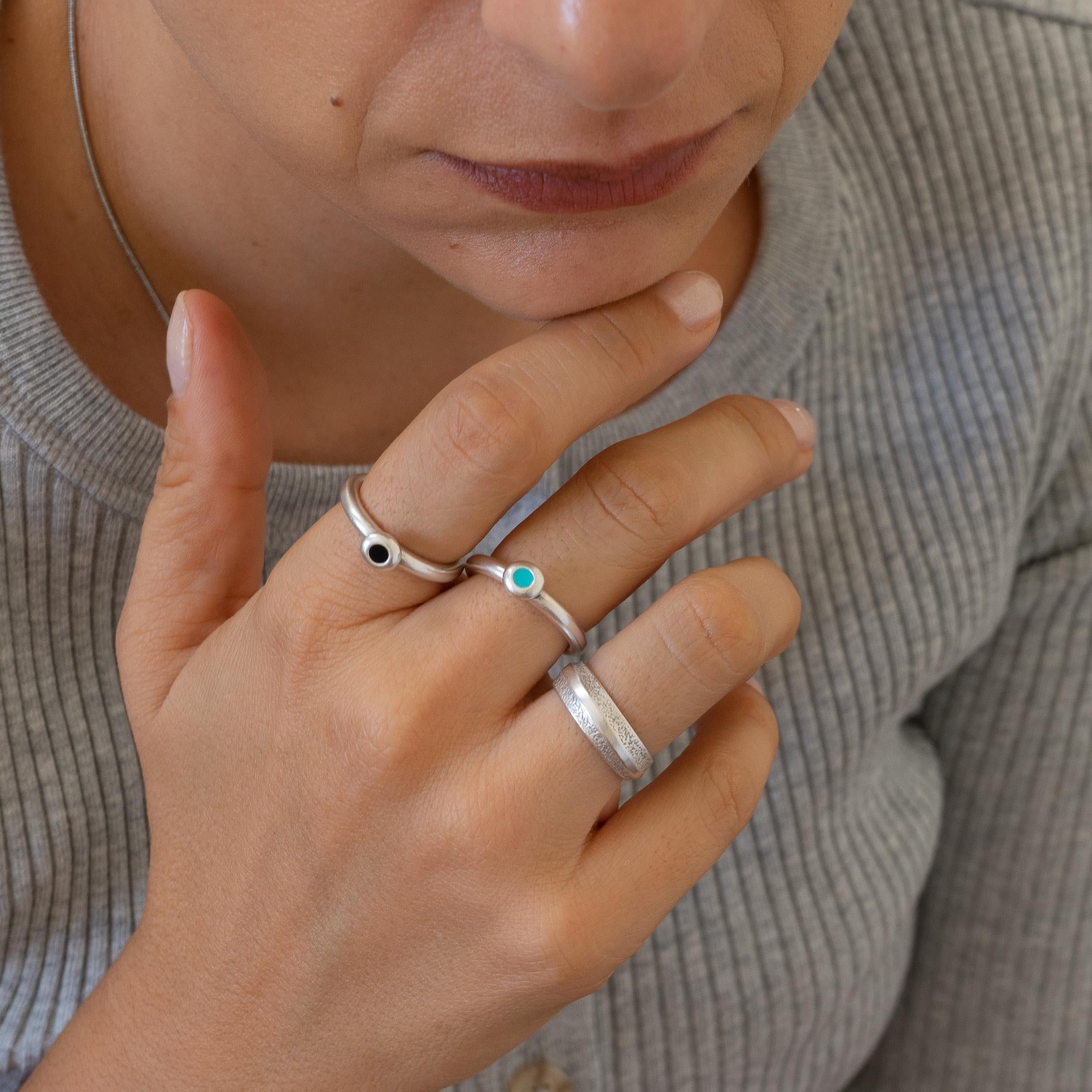 Discover a beautifully crafted ring featuring a round enamel setting available in striking Black or Turquoise. This stylish and versatile piece is perfect for adding a pop of color to your outfits while enhancing your jewelry collection. Pair it with our matching earrings for a coordinated look.