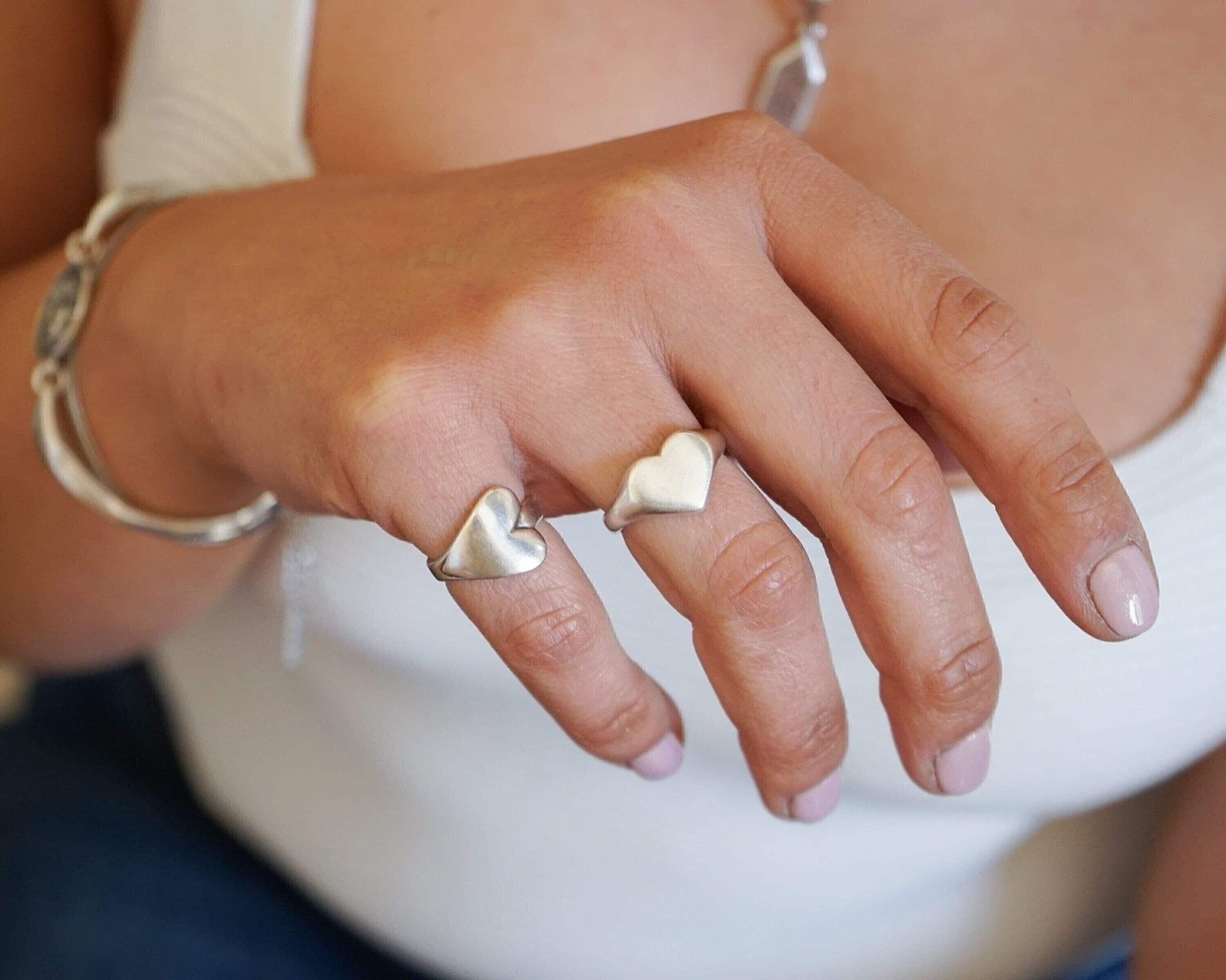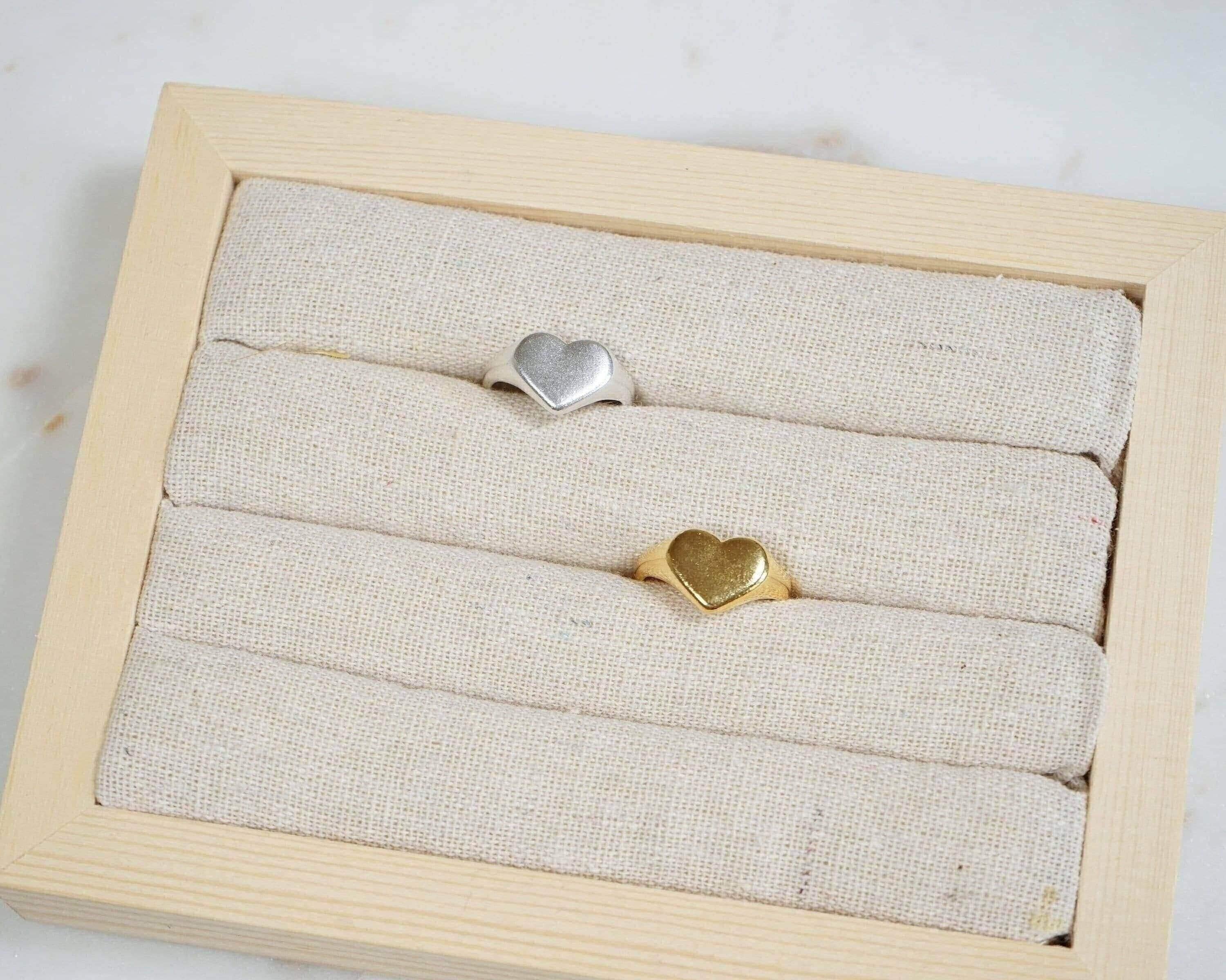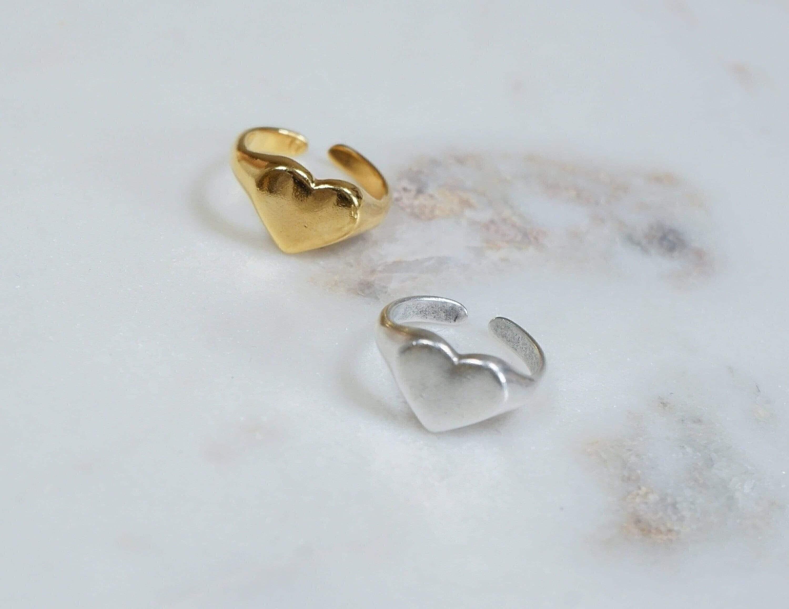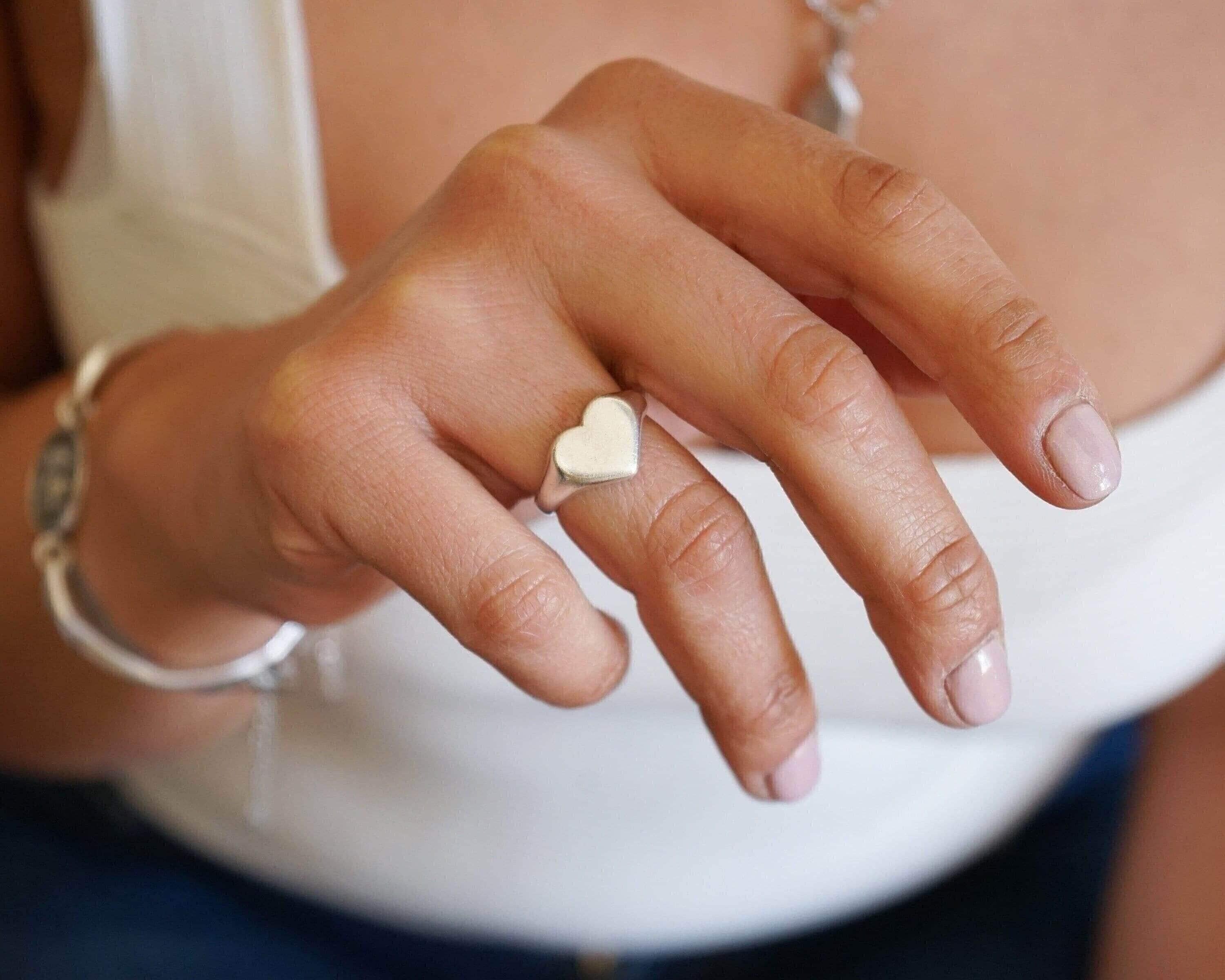 Made from silver plated zamak, this dainty SIGNET HEART ring is the sweetest symbol of love. The small dainty band ring brings its rock vibes to your everyday outfits.