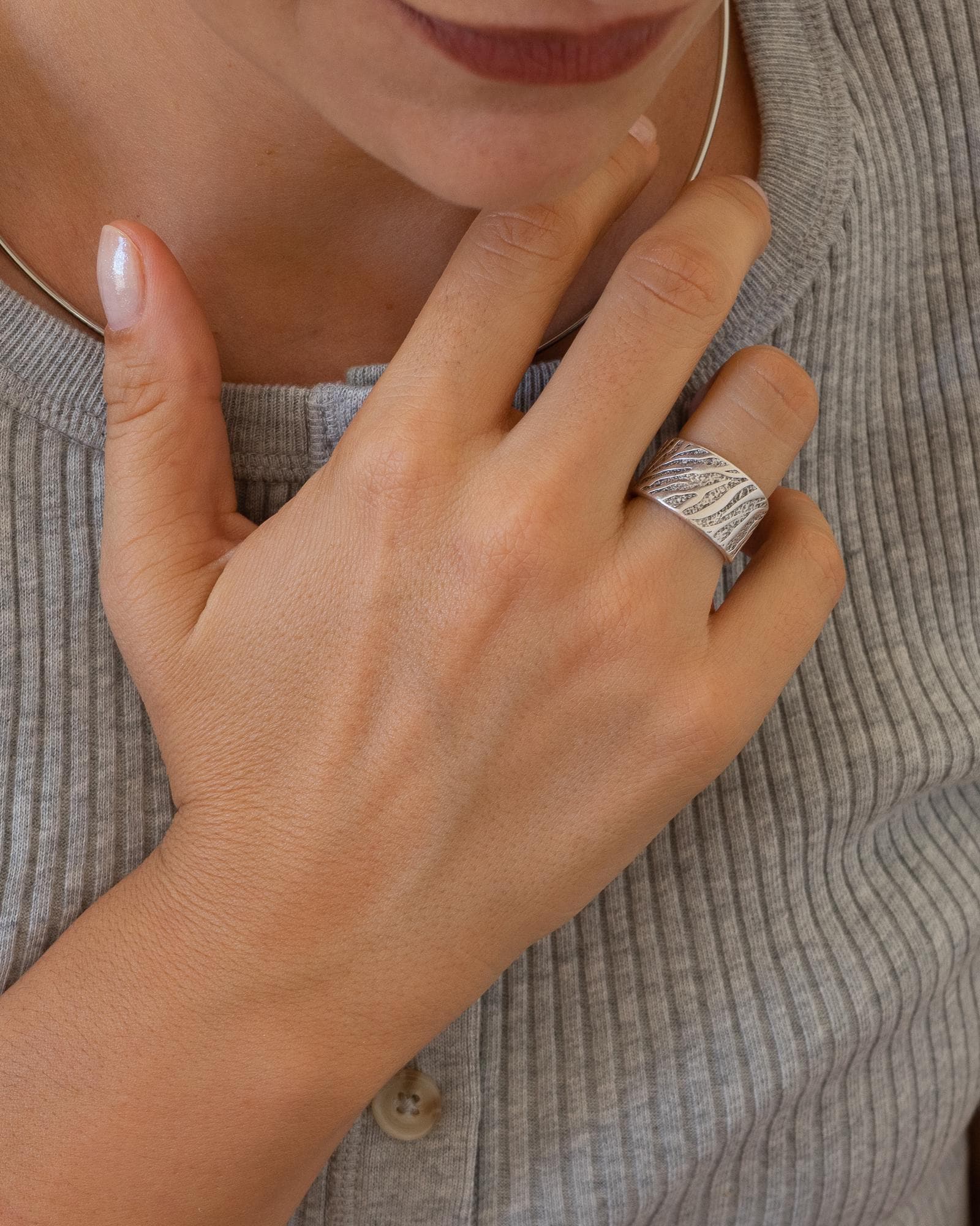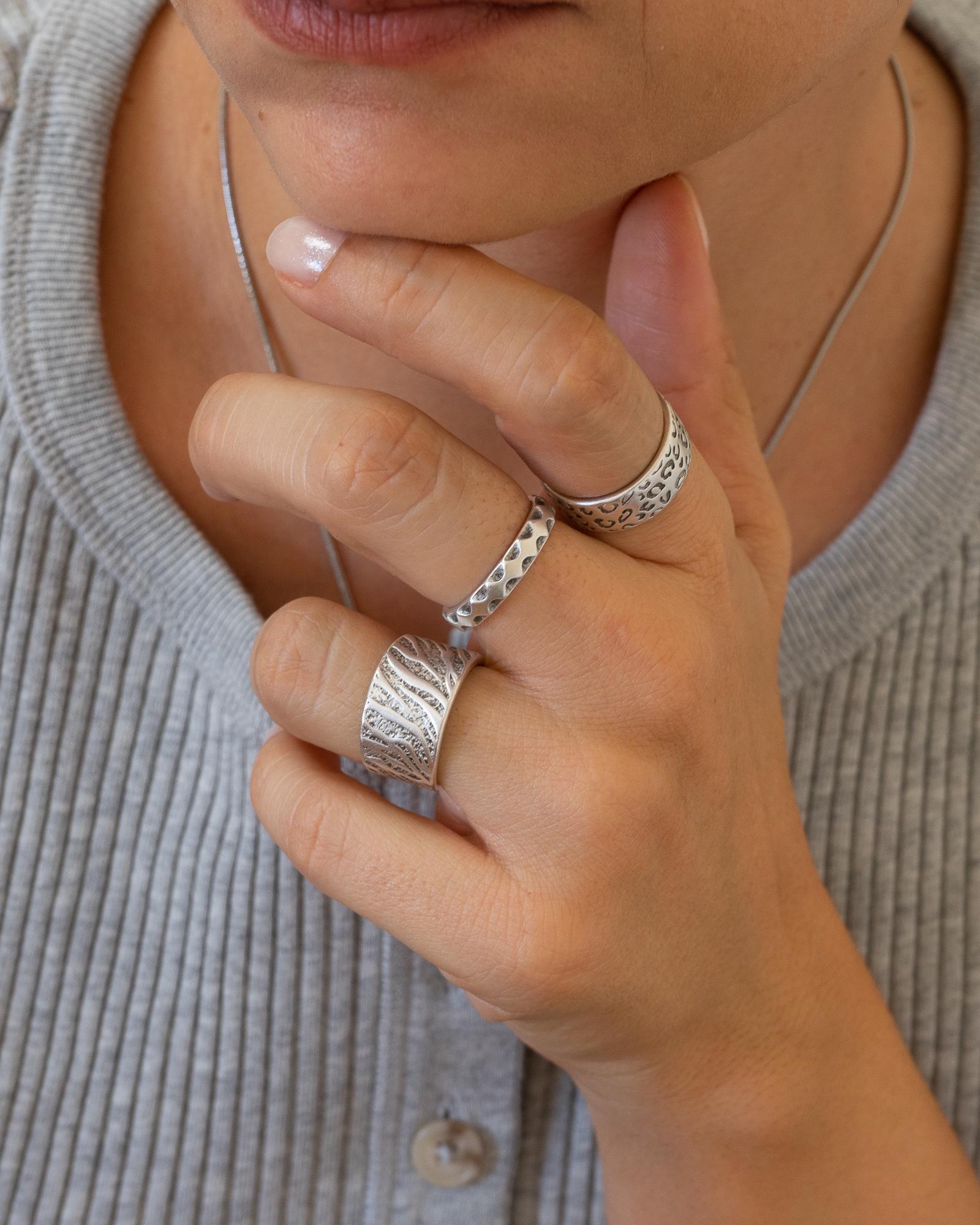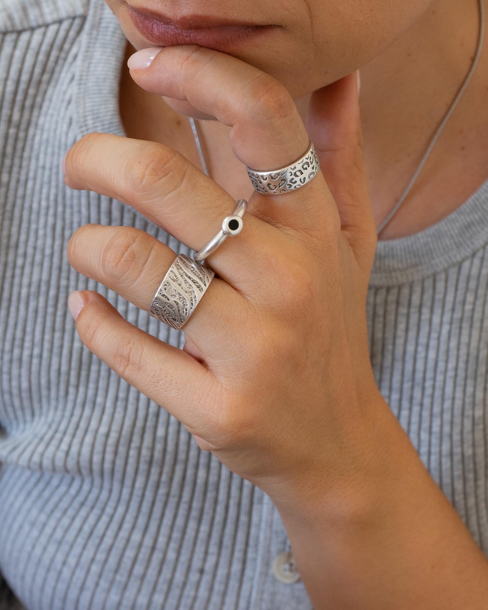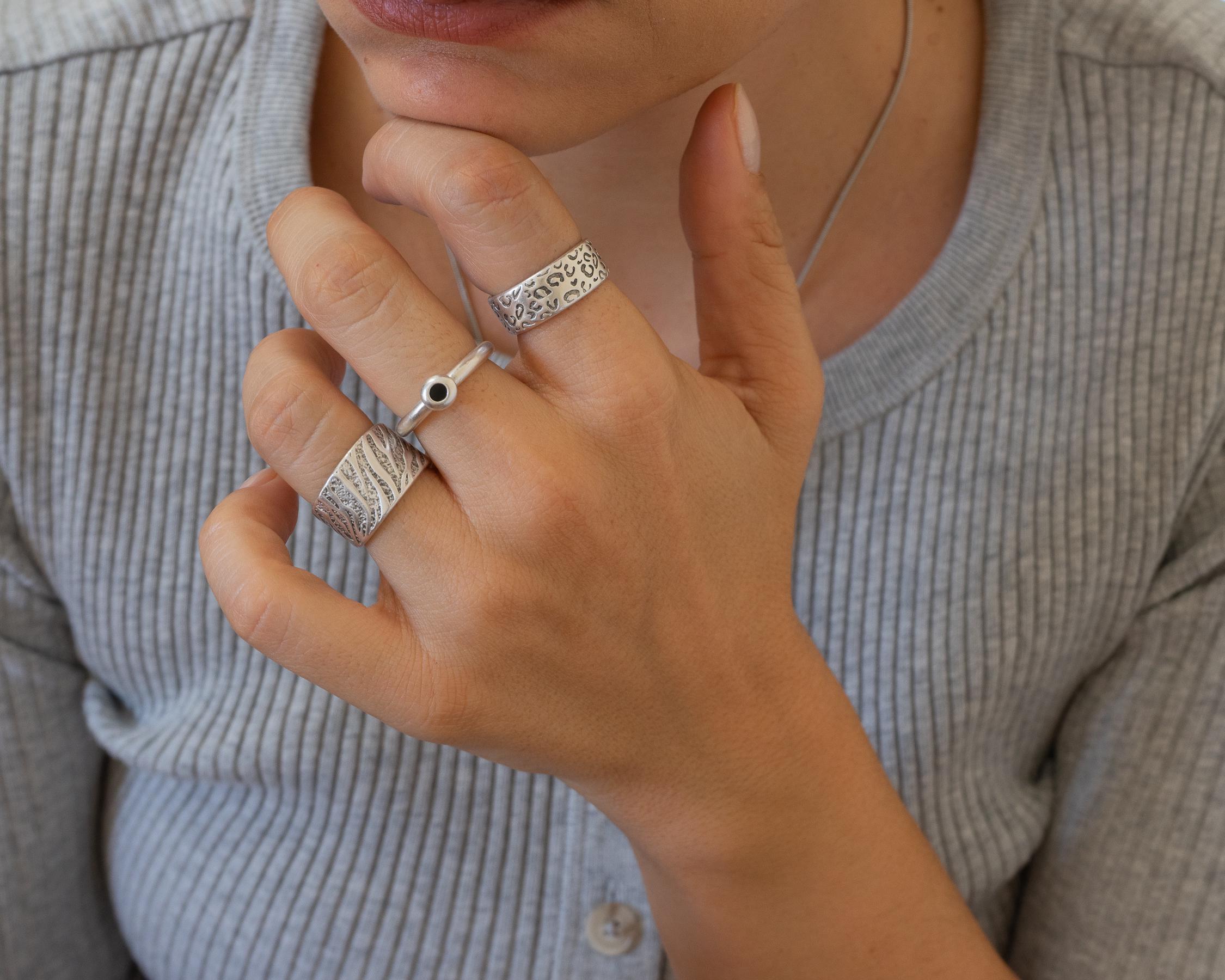 Discover the captivating charm of this silver-plated ring, featuring a striking zebra animal print pattern that adds a bold touch to your jewelry collection. Its adjustable design allows it to comfortably fit on your index, middle, or ring finger, providing versatility for your style. Whether worn alone as a statement piece or paired with other rings for a layered look, its unique, irregular shape ensures it stands out.