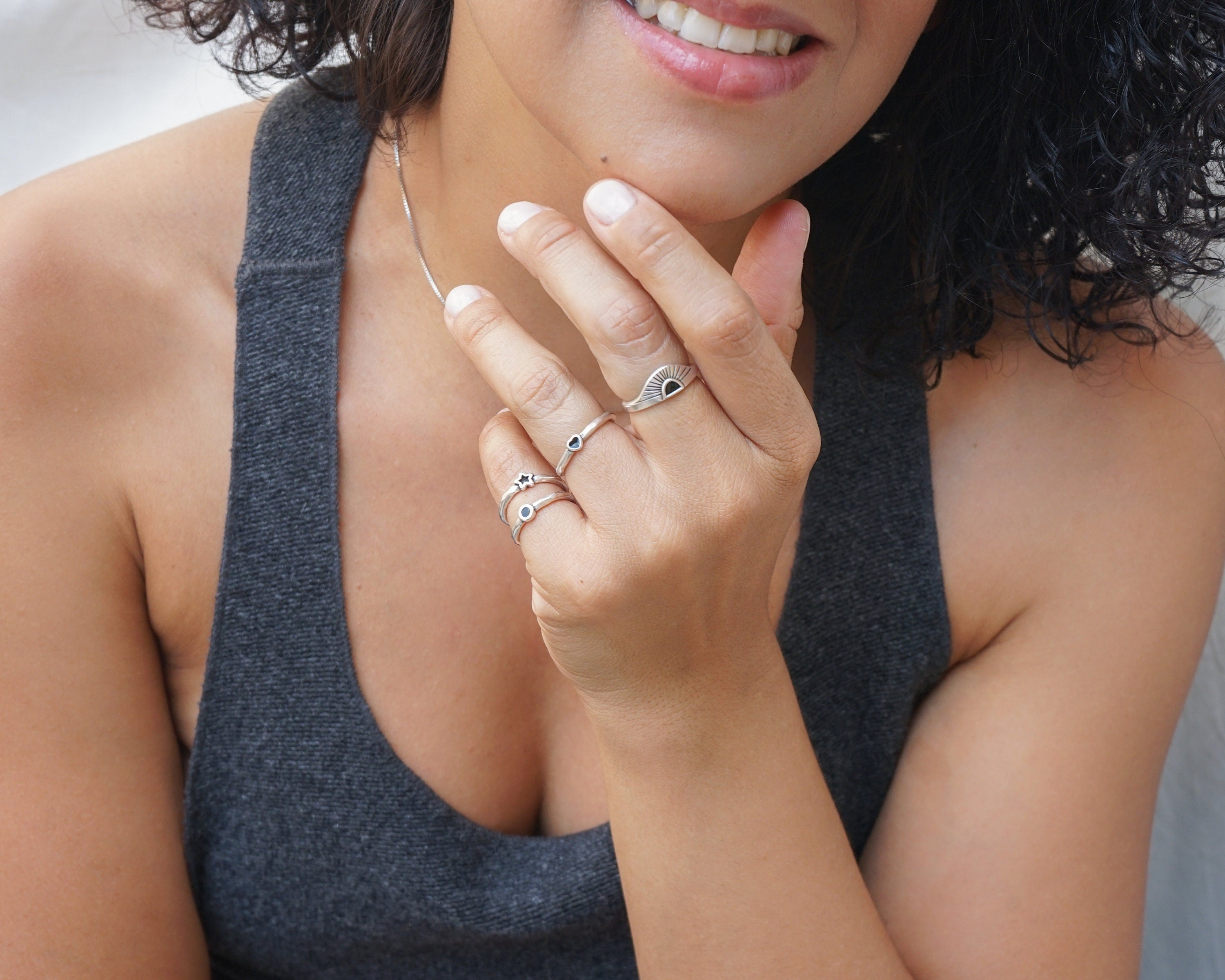 Discover the charm of this minimalist solitaire ring, featuring a striking black or turquoise heart enamel setting atop a beautifully hammered band. This distinctive piece adds a touch of elegance to any outfit, making it a perfect addition to your jewelry collection.