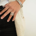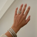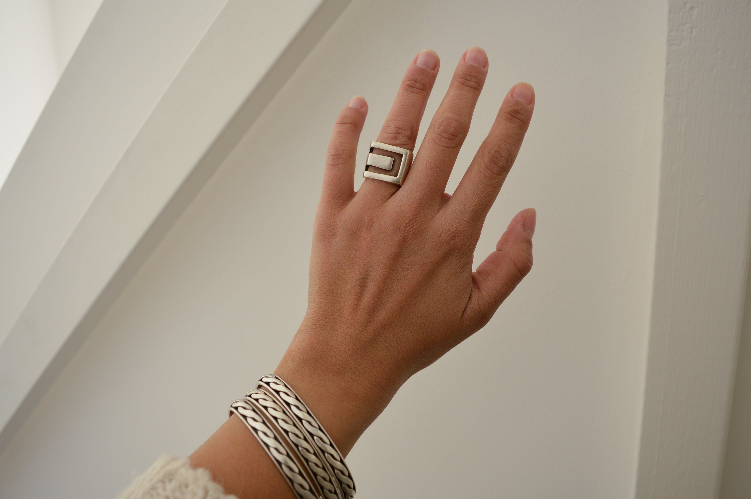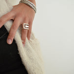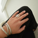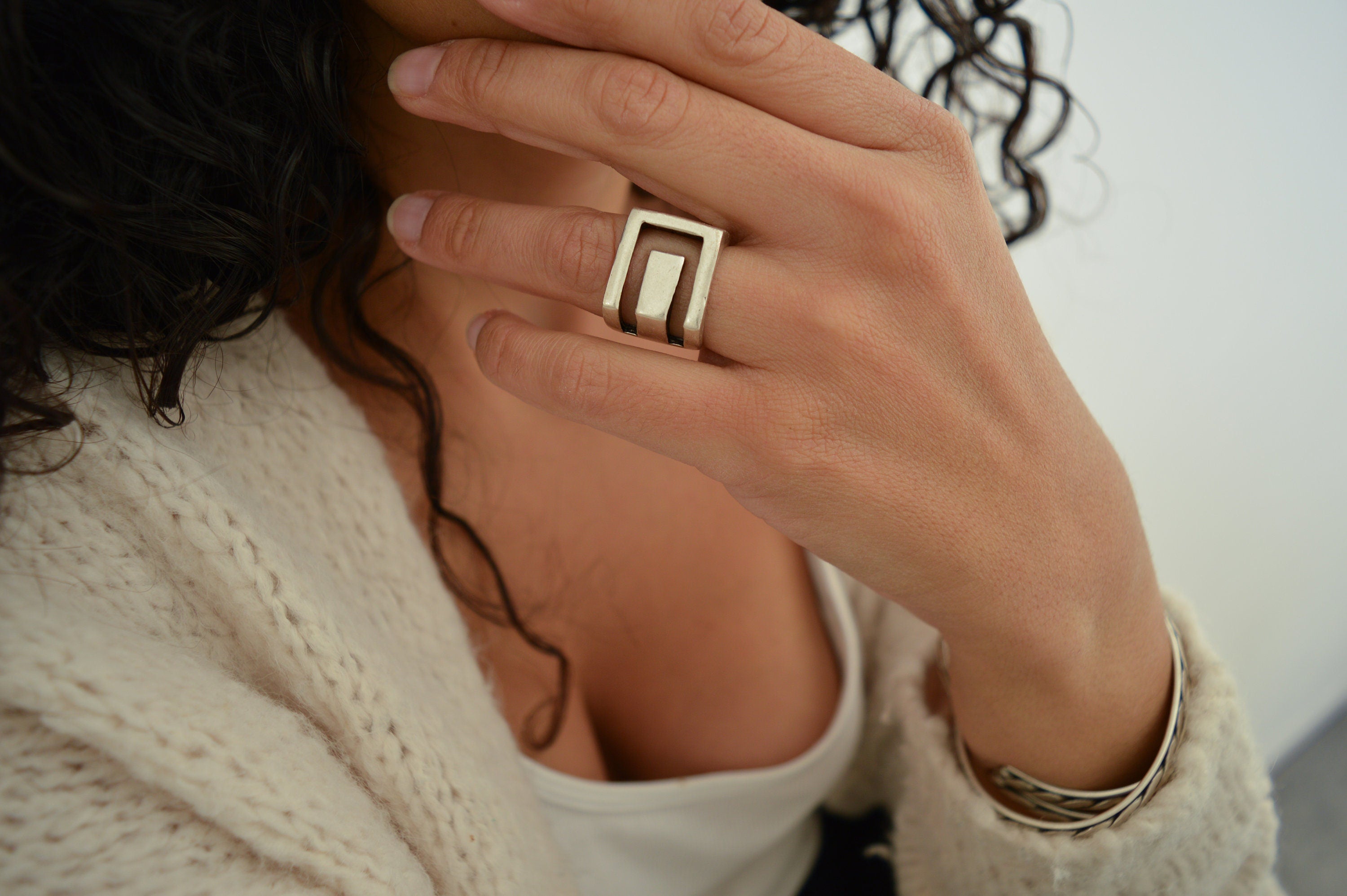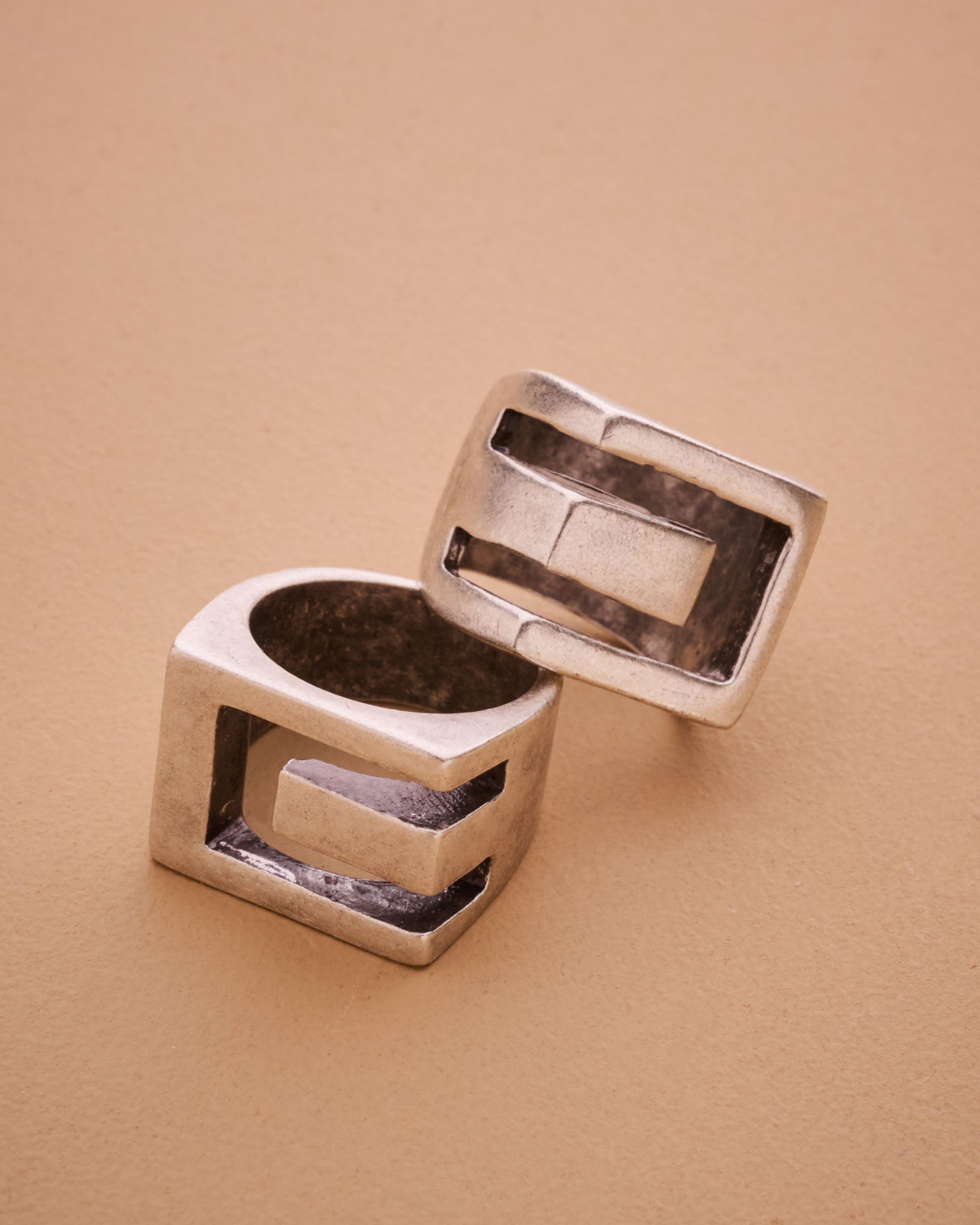 Discover a stunning blend of elegance and contemporary design with our antique silver geometric ring, a popular choice among our customers. Featuring a distinctive square shape, this versatile piece can be worn on the index, middle, or ring finger, making it a flexible addition to your jewelry collection.