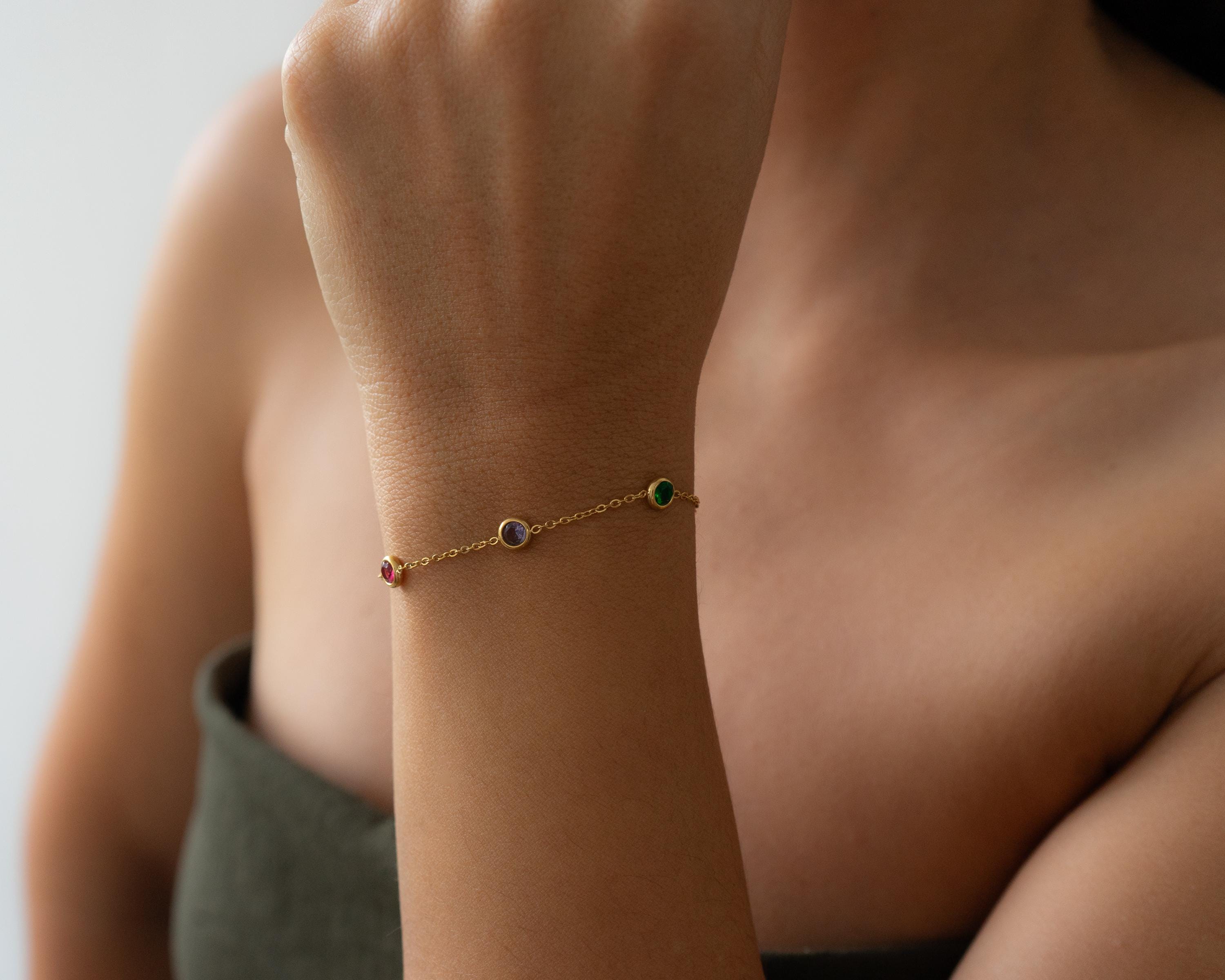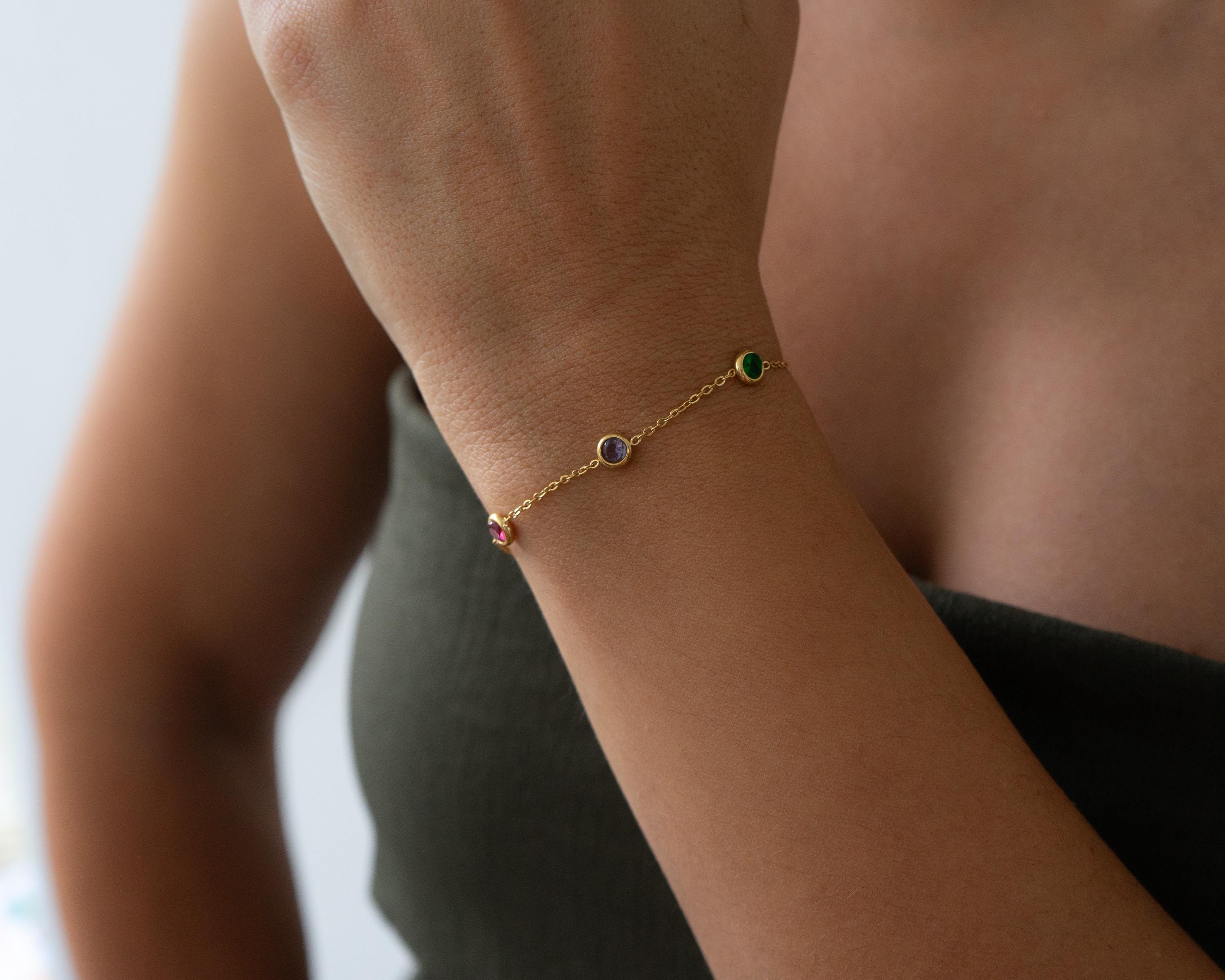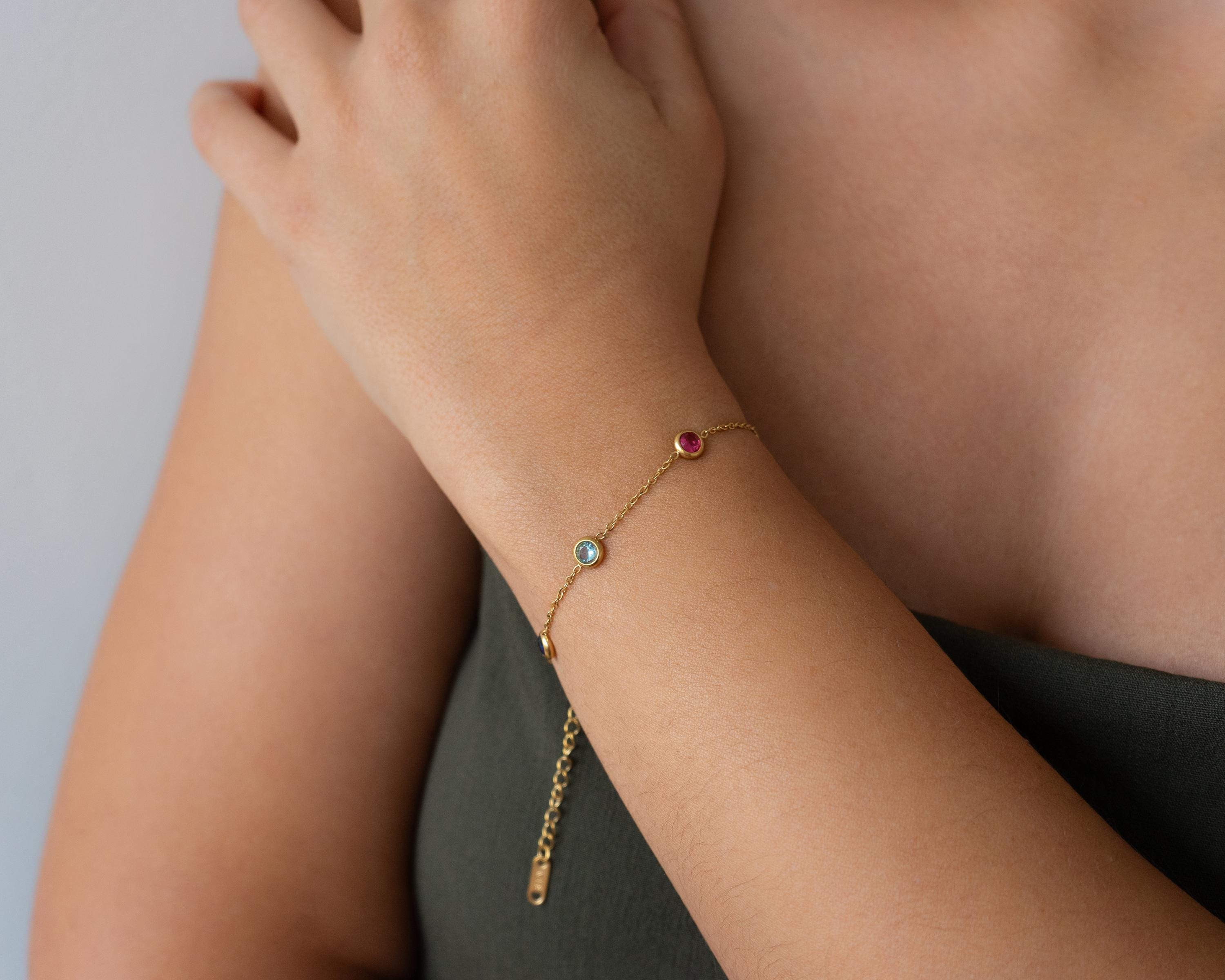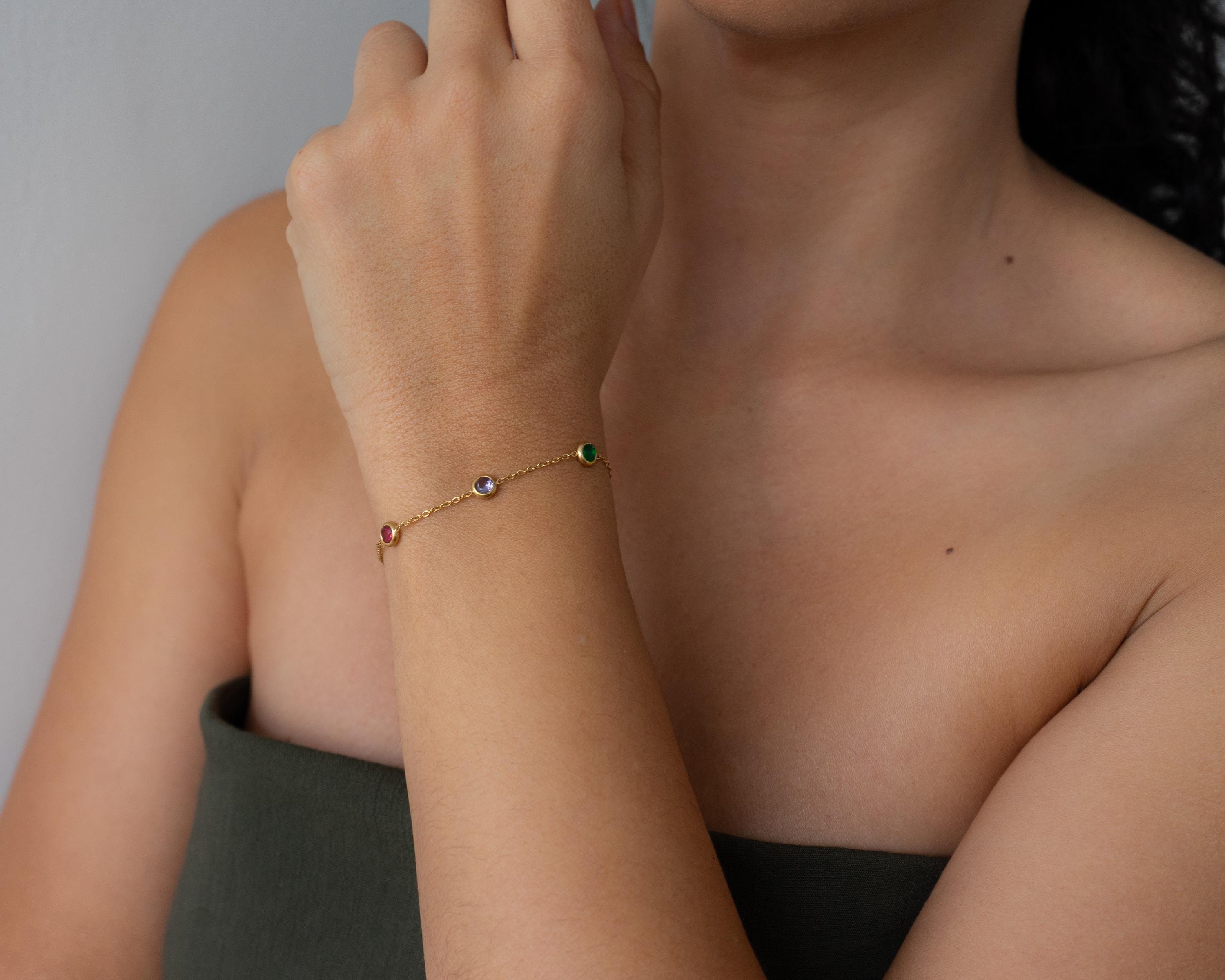 Αυτό το λεπτεπίλεπτο βραχιόλι διαθέτει χρυσή αλυσίδα από ανοξείδωτο ατσάλι διακοσμημένη με μικρές πολύχρωμες πέτρες που δημιουργούν ένα παιχνιδιάρικο και κομψό αποτέλεσμα.