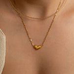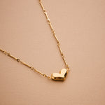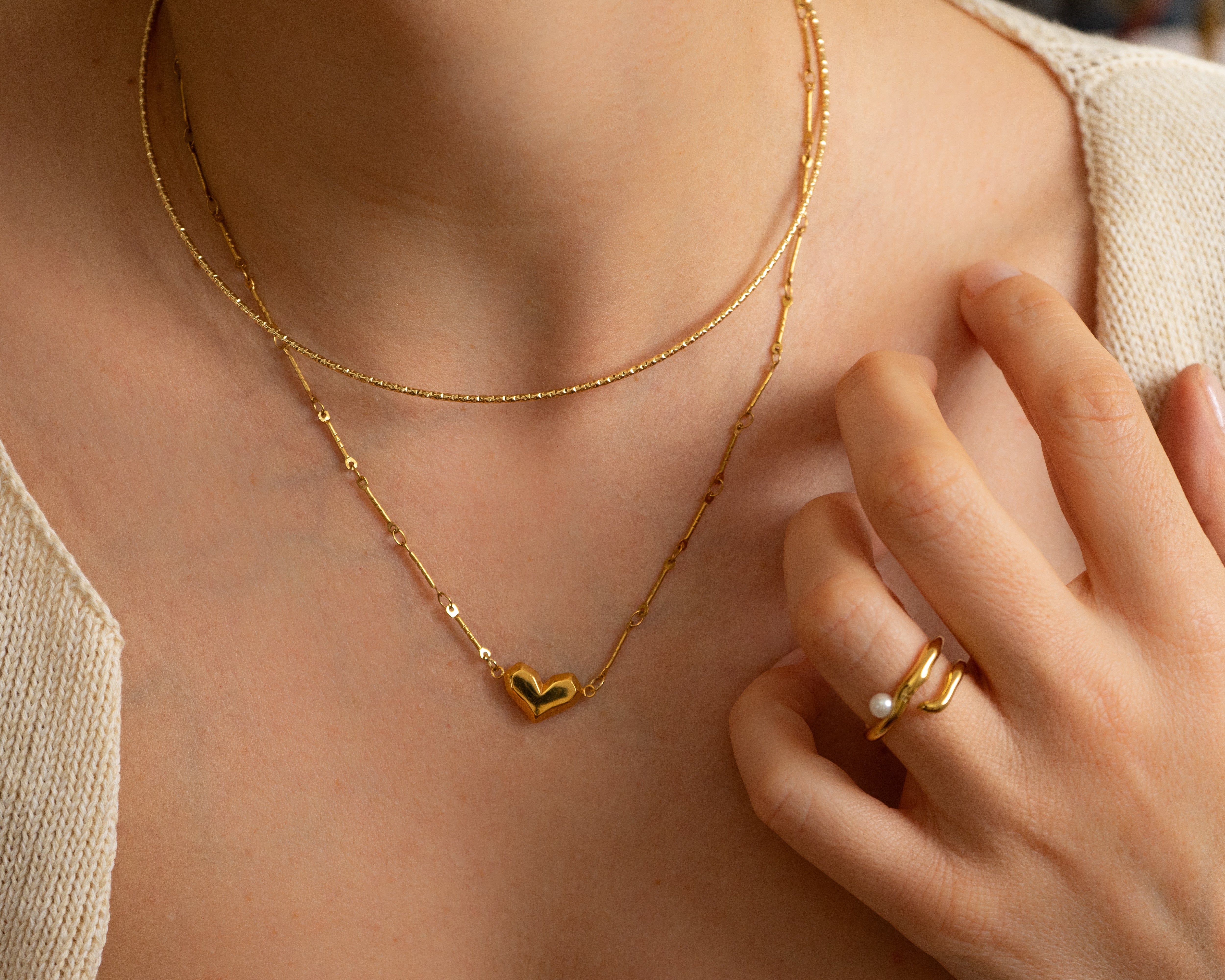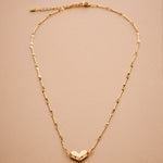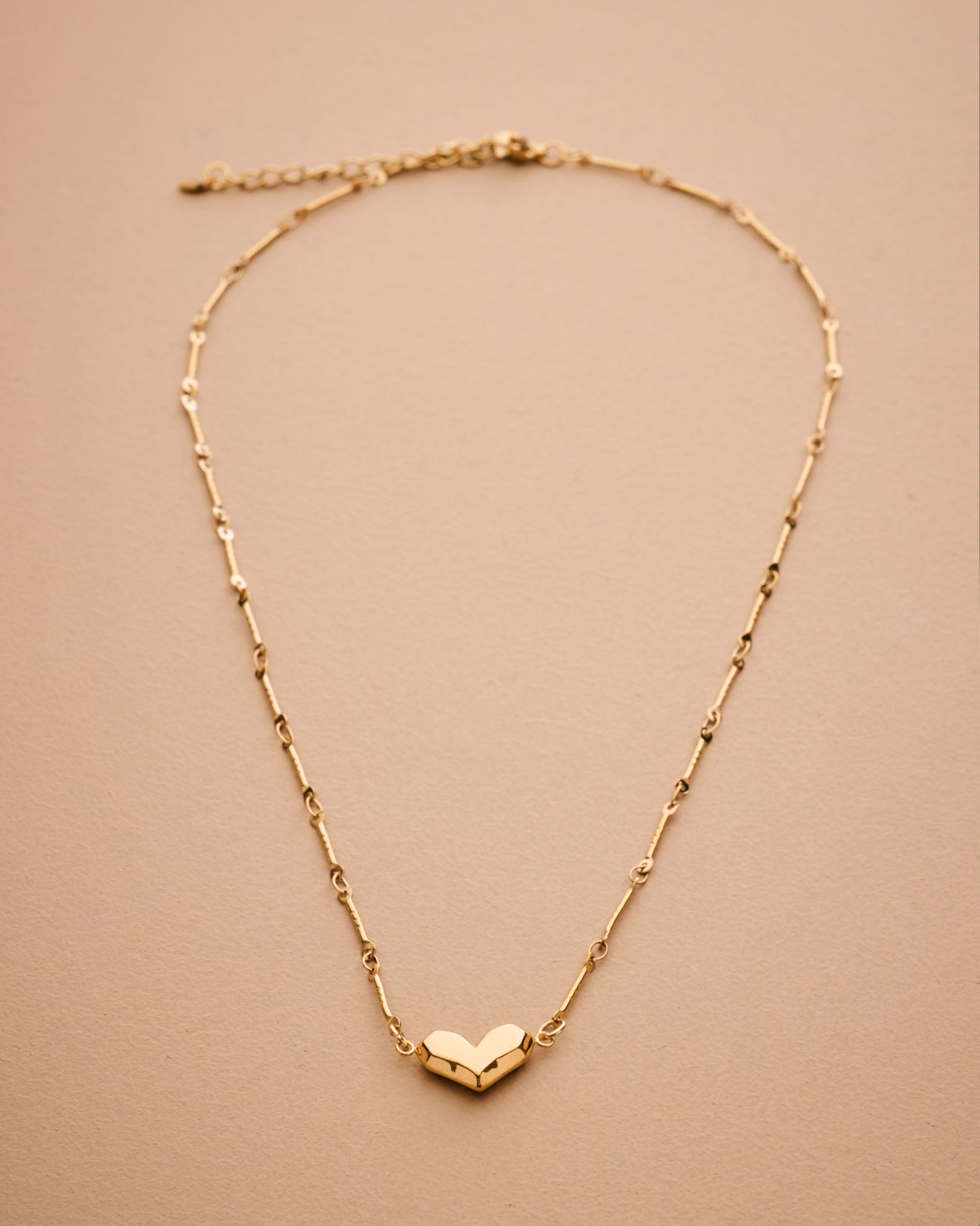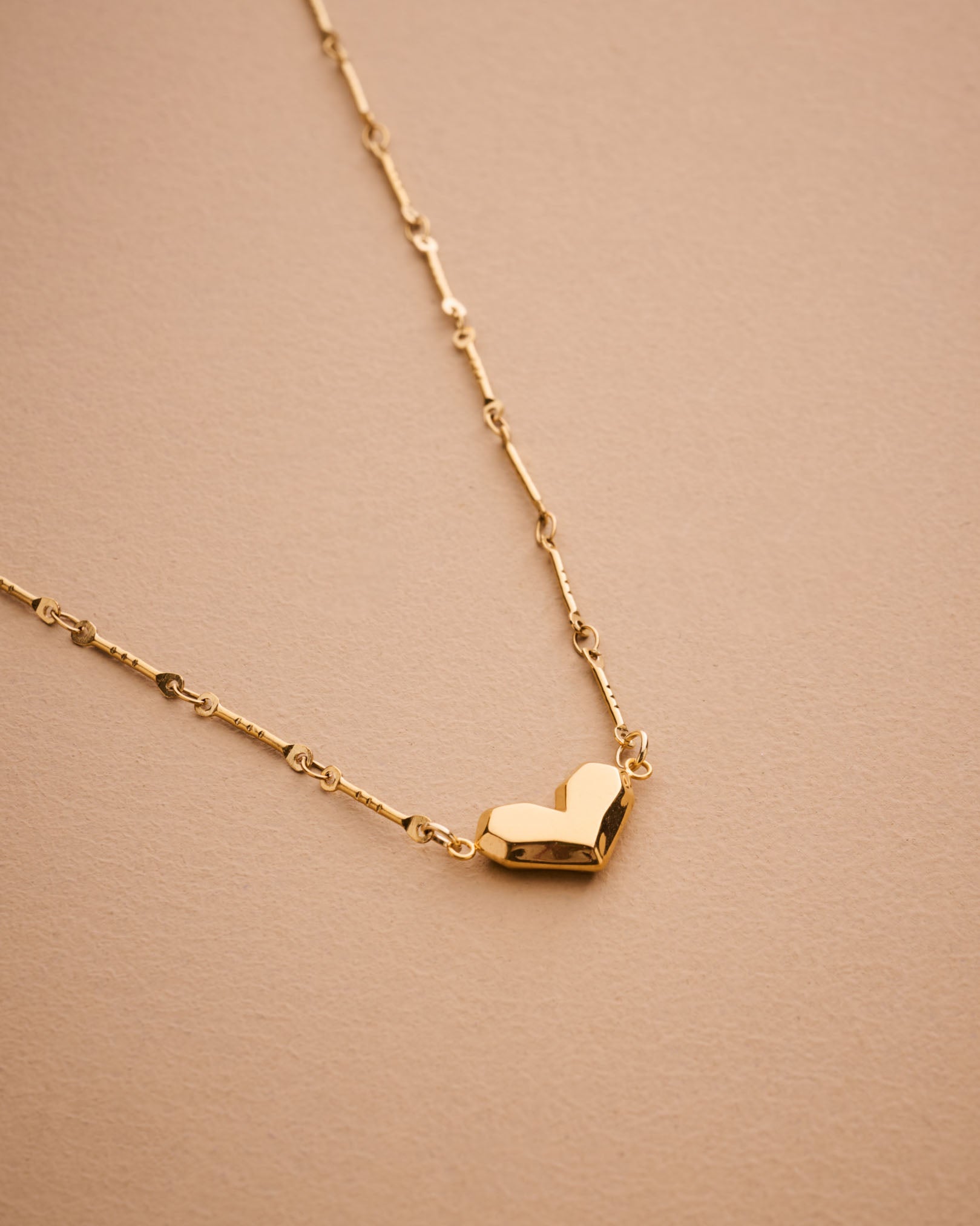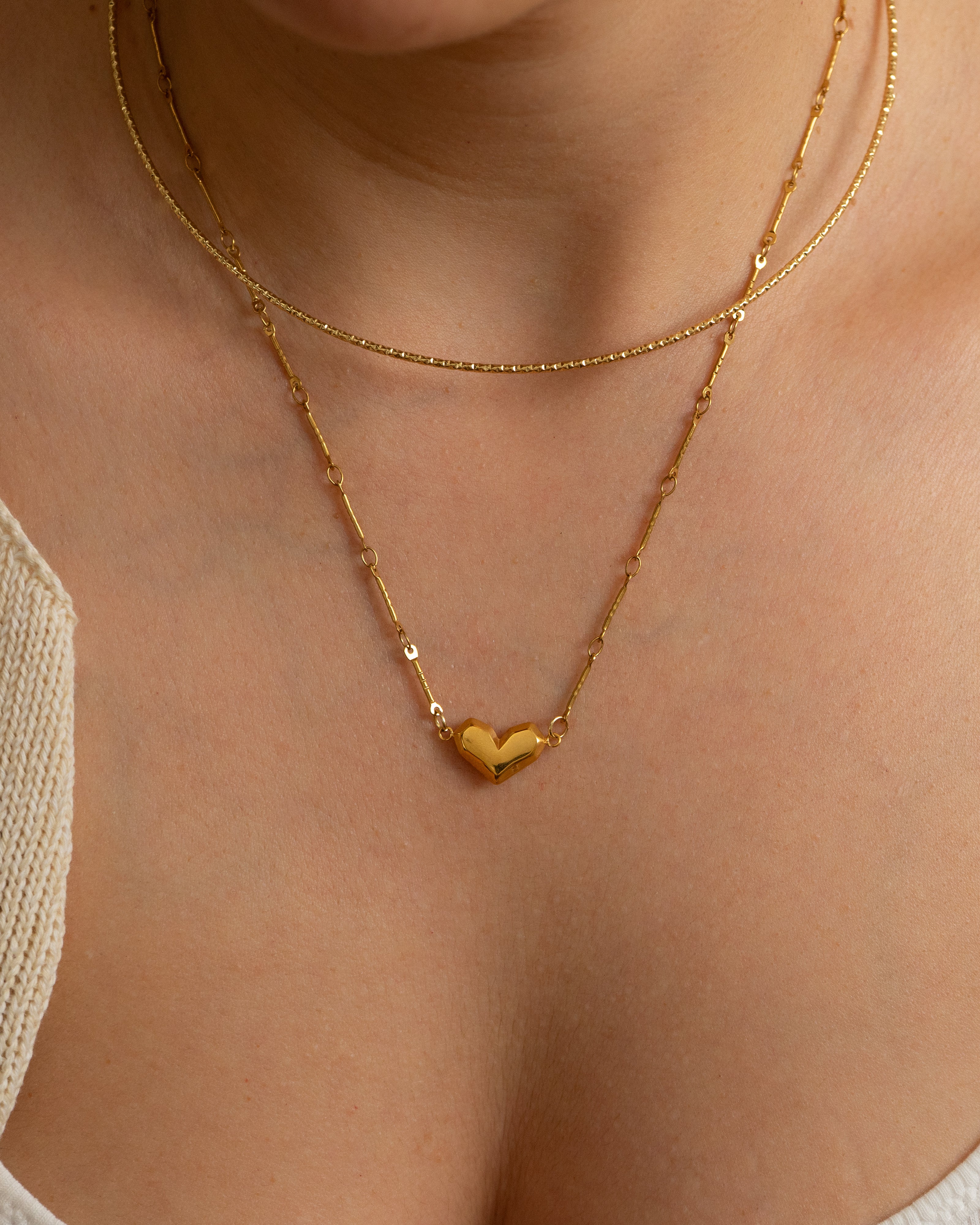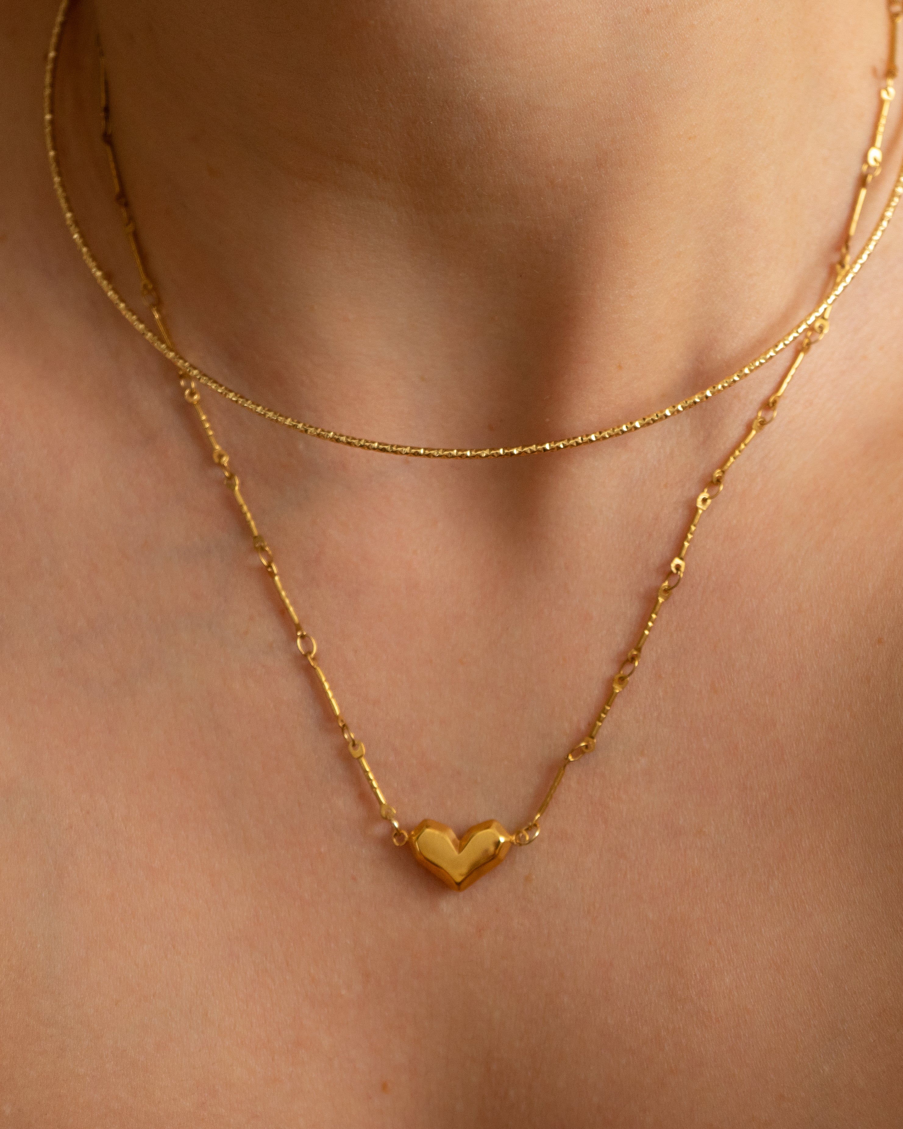 This gold geometric heart necklace brings minimalist design and everyday elegance together. Featuring a modern heart-shaped link in polished gold-tone stainless steel, it hangs from a fine, delicate chain that layers beautifully with other pieces or shines on its own.