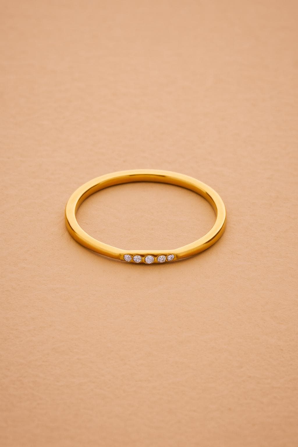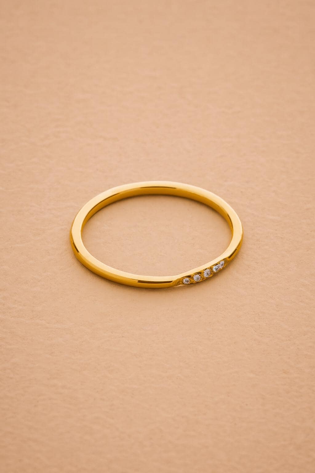 A timeless gold zircon ring that adds just the right amount of shine. This 2 mm stainless steel band is accented with delicate zircon stones, giving a refined sparkle that’s perfect for layering or wearing solo.