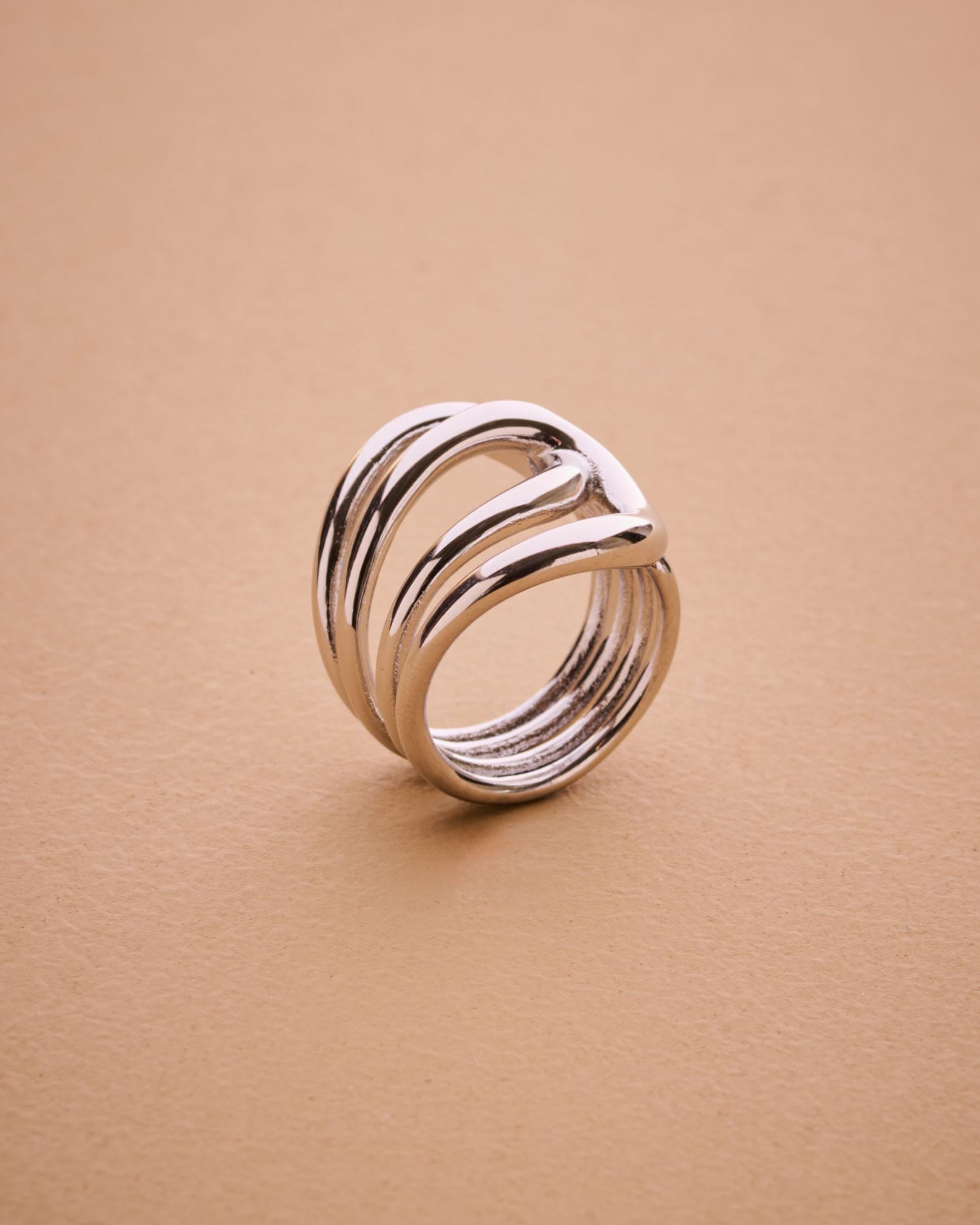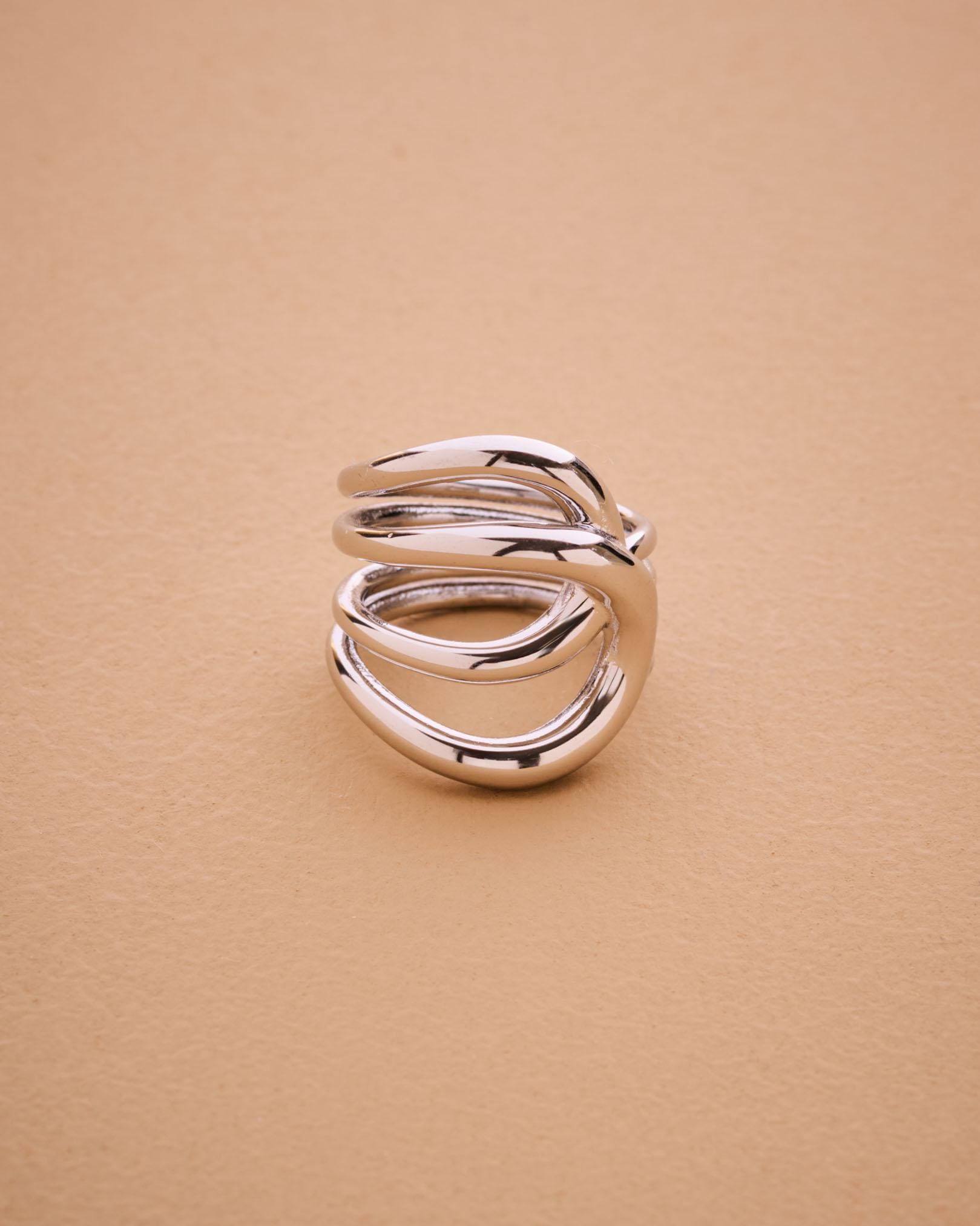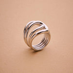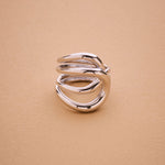 This sculptural silver stainless steel ring features a bold open design with smooth contours. Lightweight, durable, and hypoallergenic — a modern statement ring for everyday wear or special occasions.