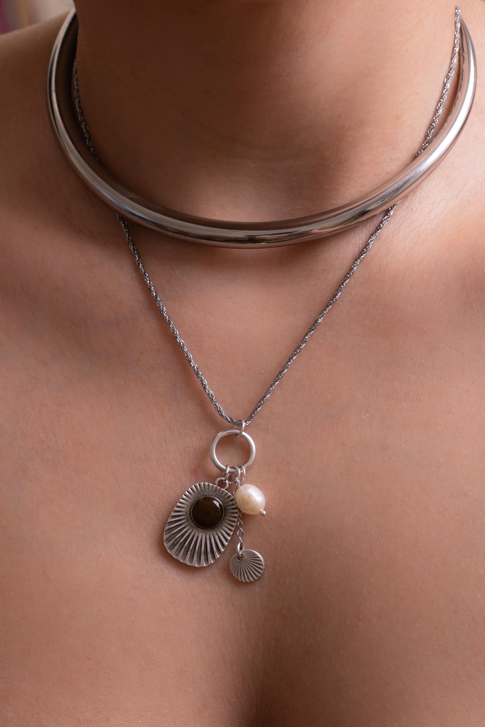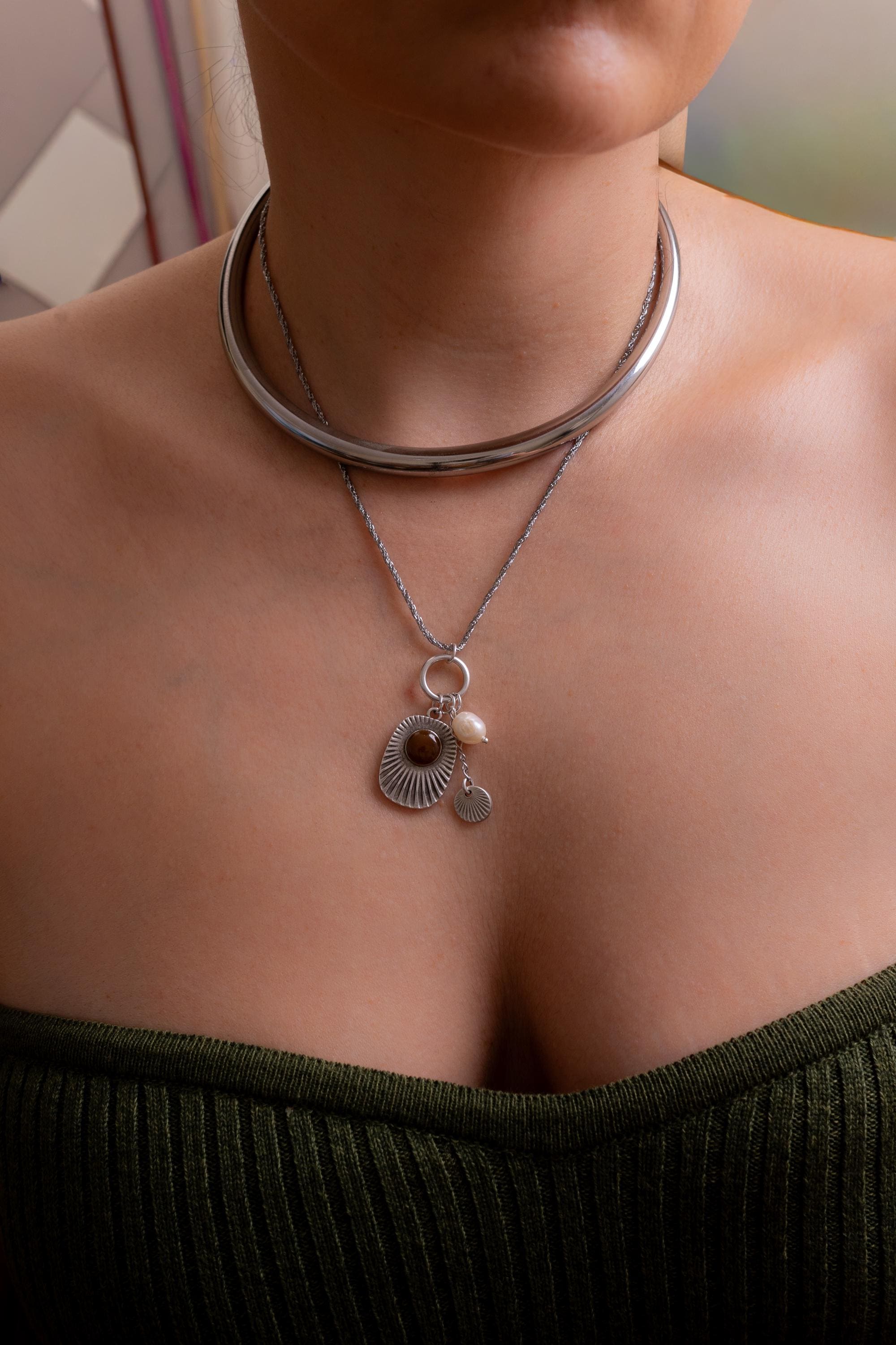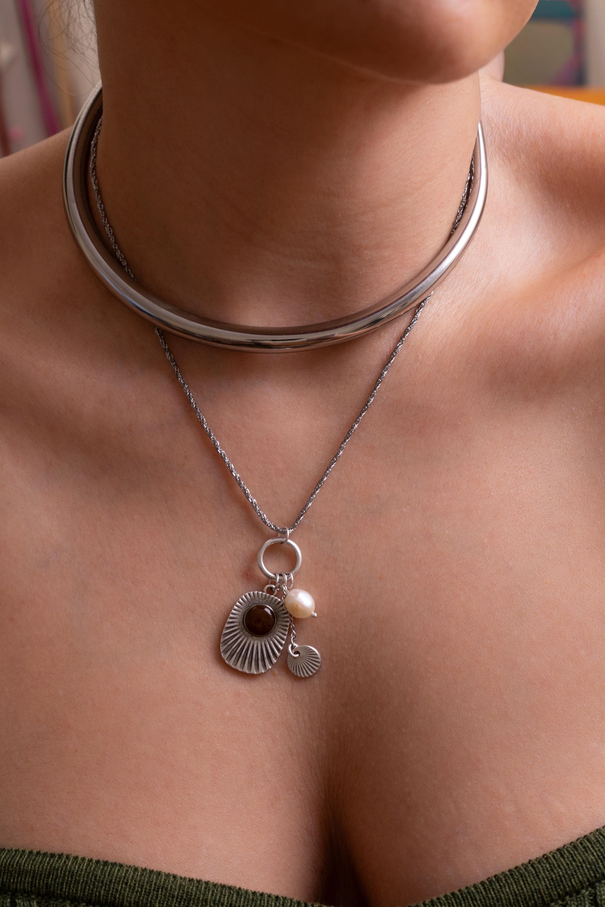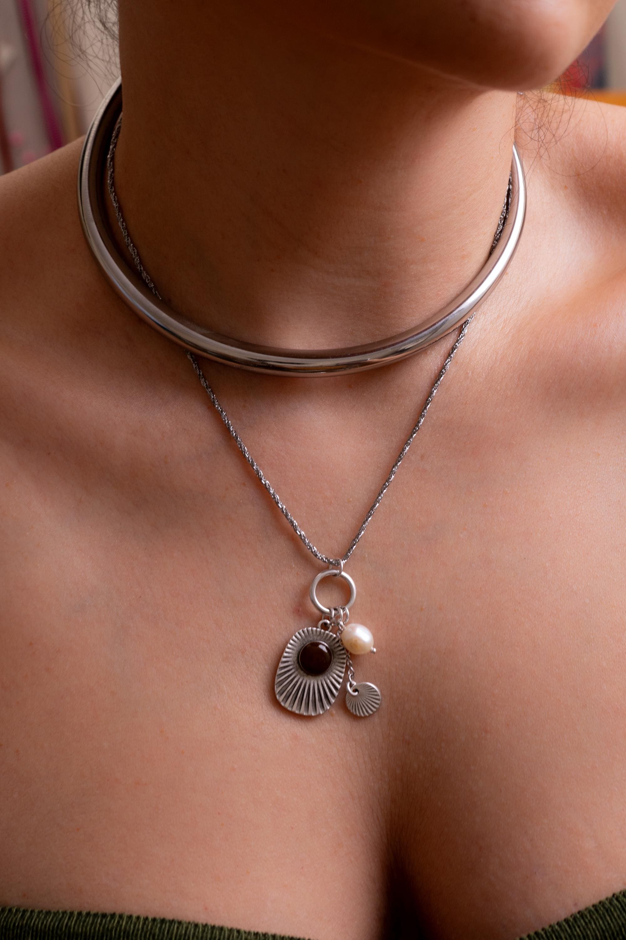 Ασημένιο Κολιέ Κολάρο Από Ανοξείδωτο Ατσάλι