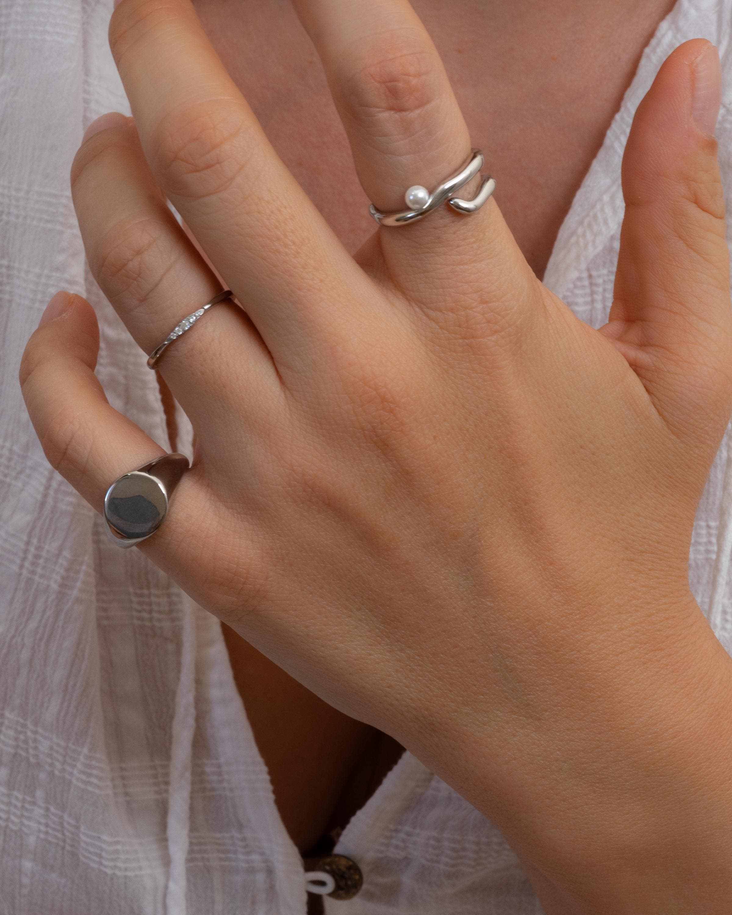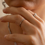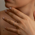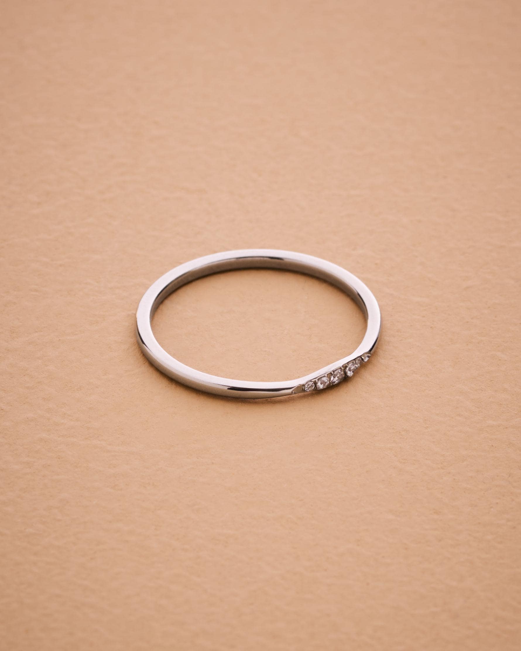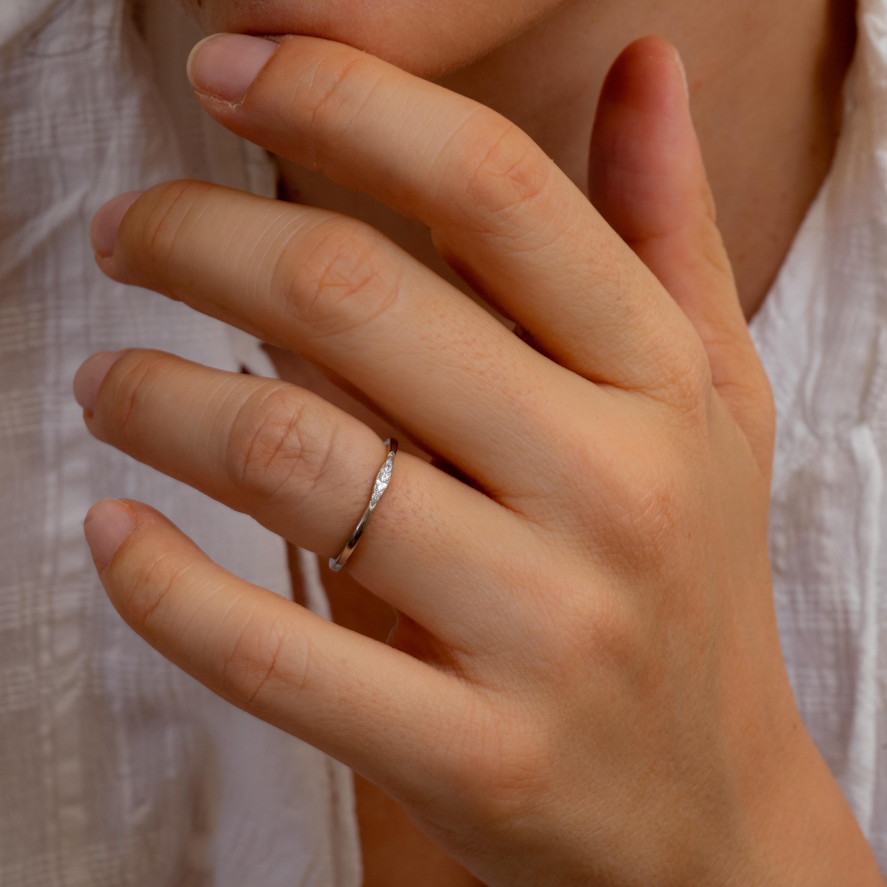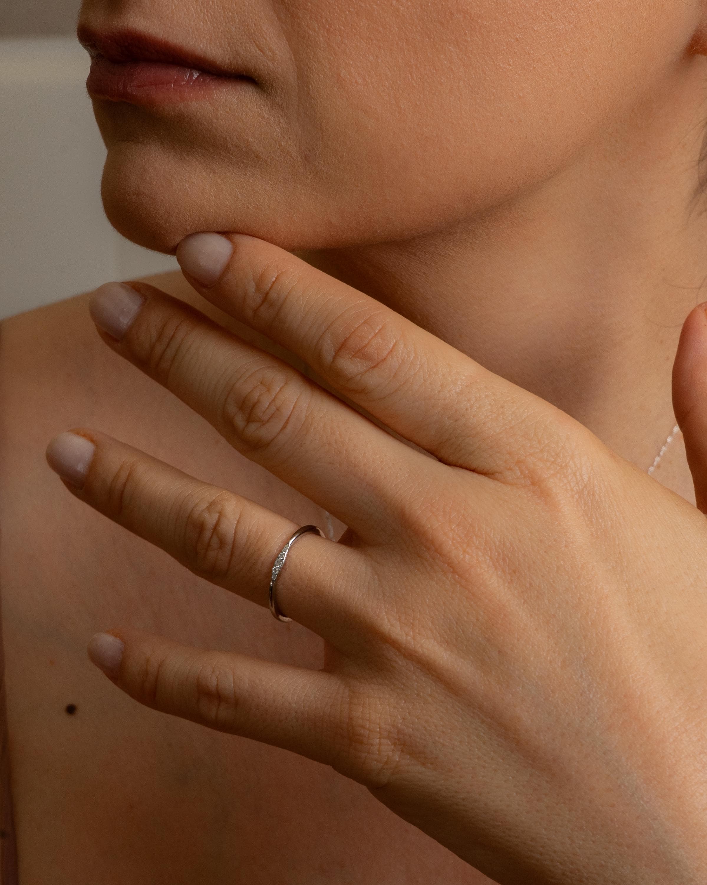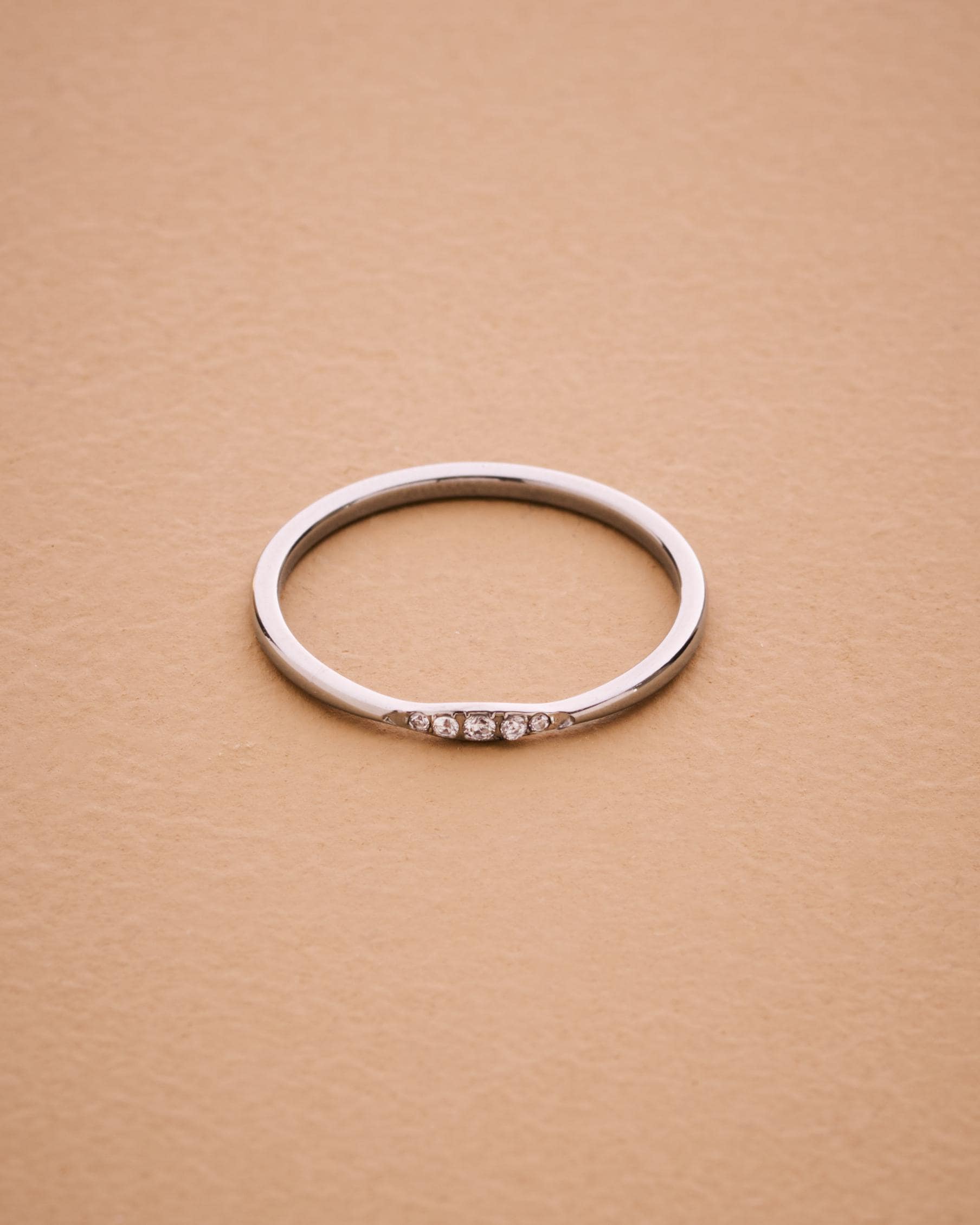 A minimalist silver zircon ring designed for effortless elegance. Crafted from stainless steel and adorned with small zircon stones, this thin 2 mm band adds a touch of sparkle to your everyday look.