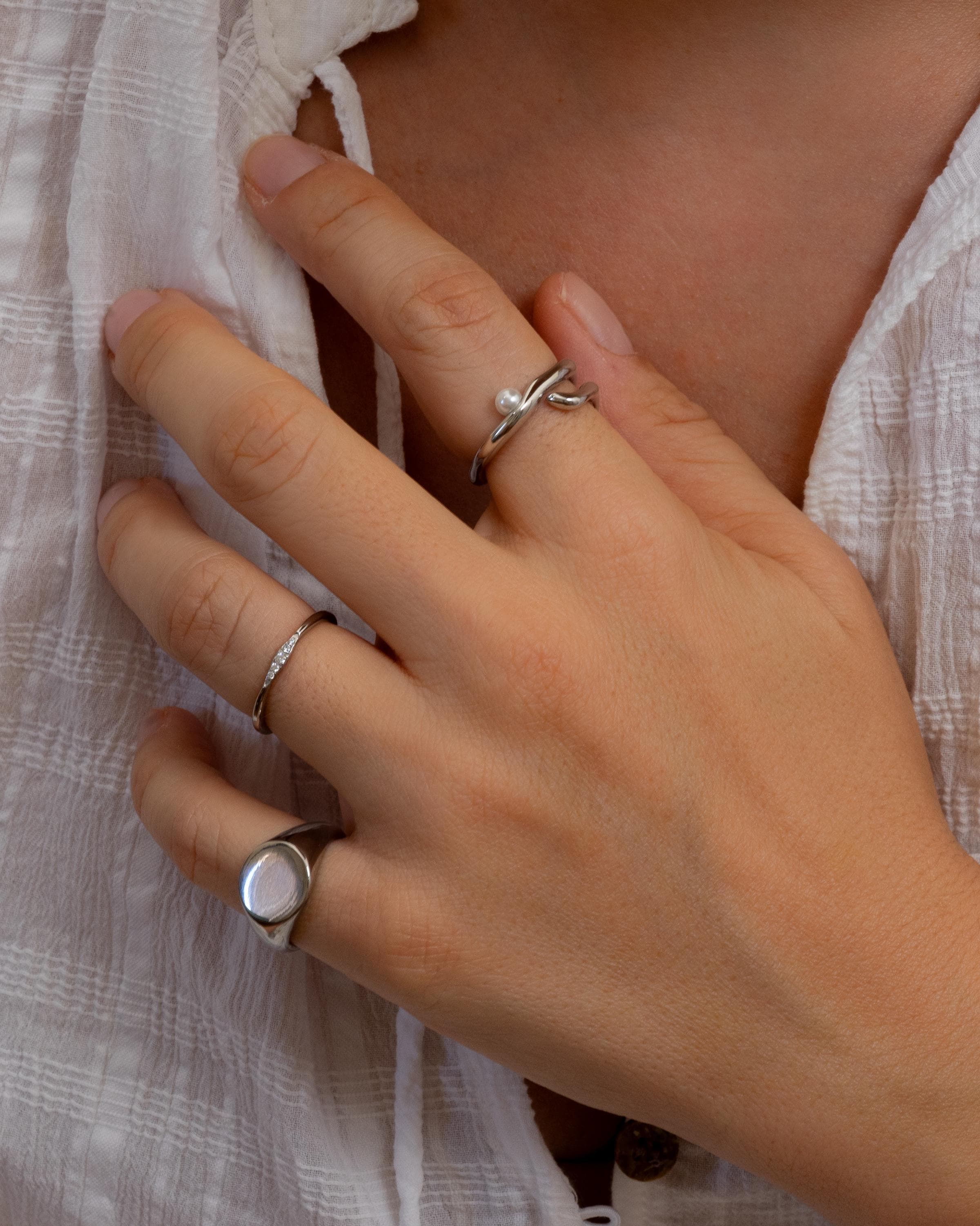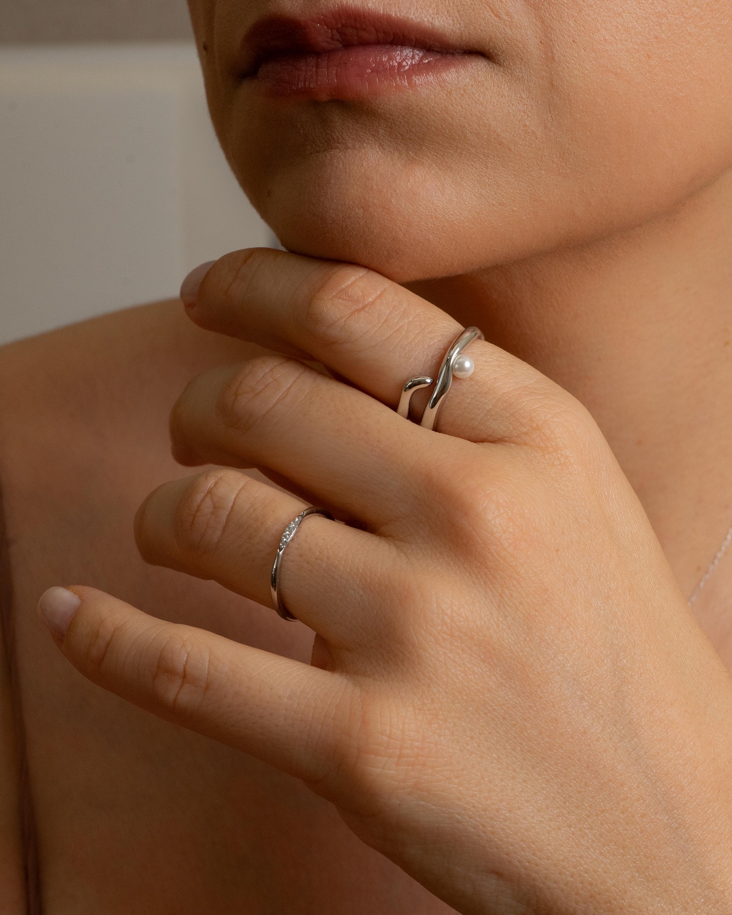 Lightweight yet durable, it’s perfect for stacking with other rings or wearing alone for a refined, delicate finish. The polished silver tone and subtle shine make it a versatile choice for day or night.