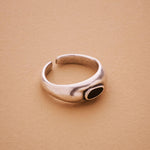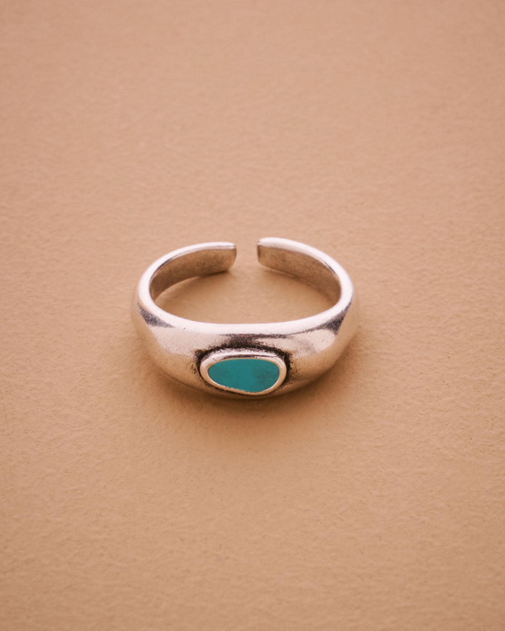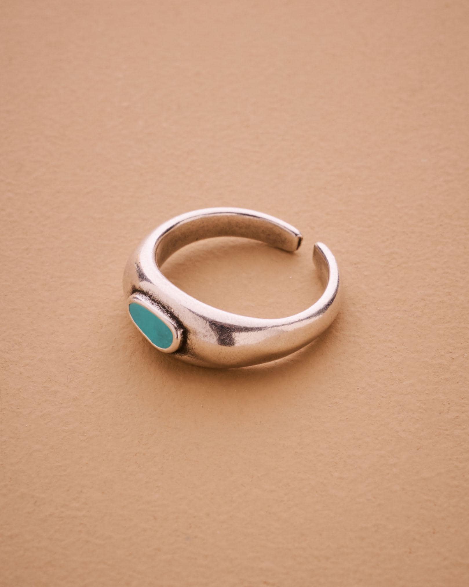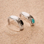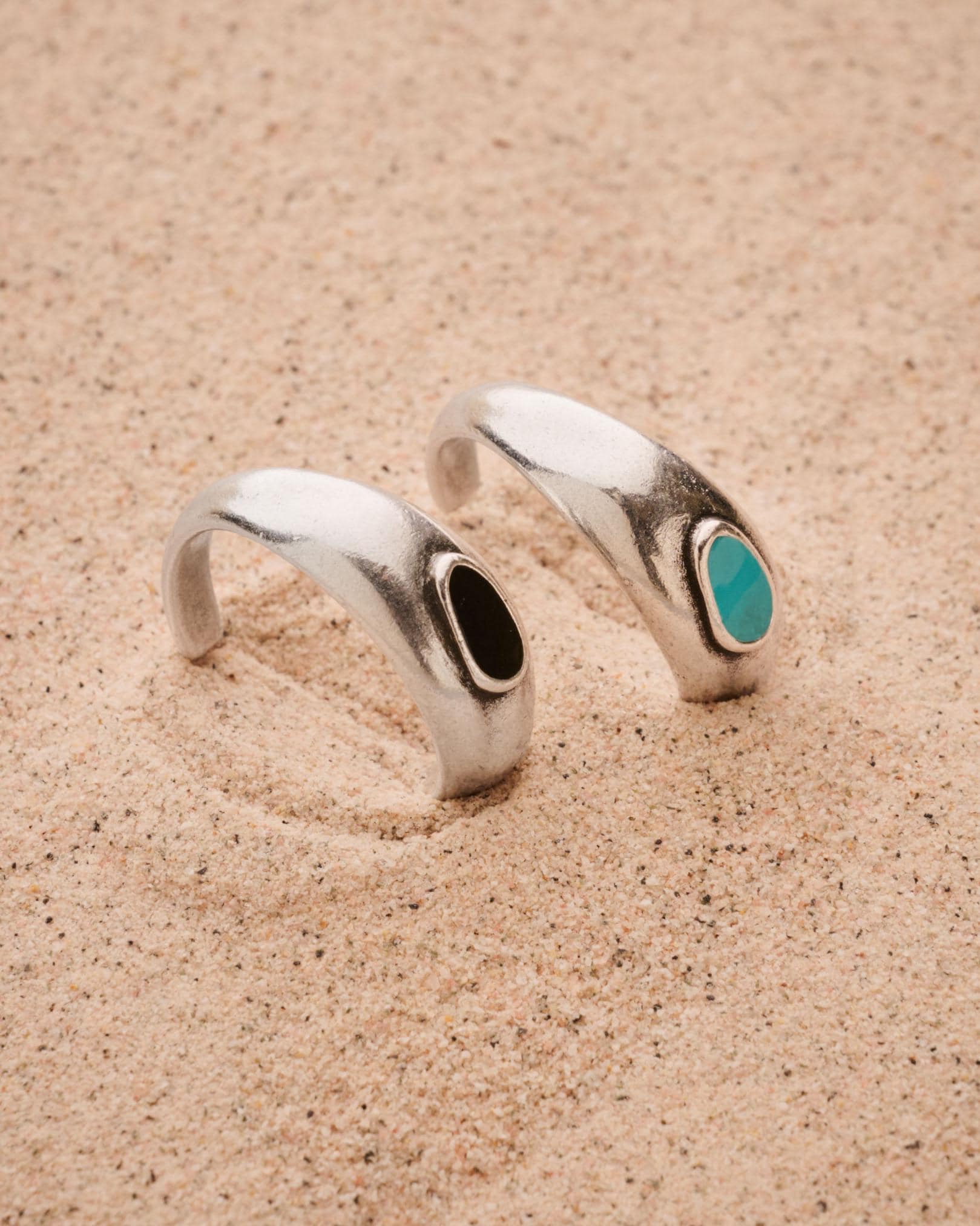Sculptural, bold, and made to stand out—this silver-toned adjustable ring features a curved open design with two contrasting enamel stone accents: vibrant turquoise and deep black. Crafted from high-quality pewter with a solid, chunky feel, this piece merges modern curves with retro flair. It’s the perfect finishing touch for bold, expressive styling—day or night.