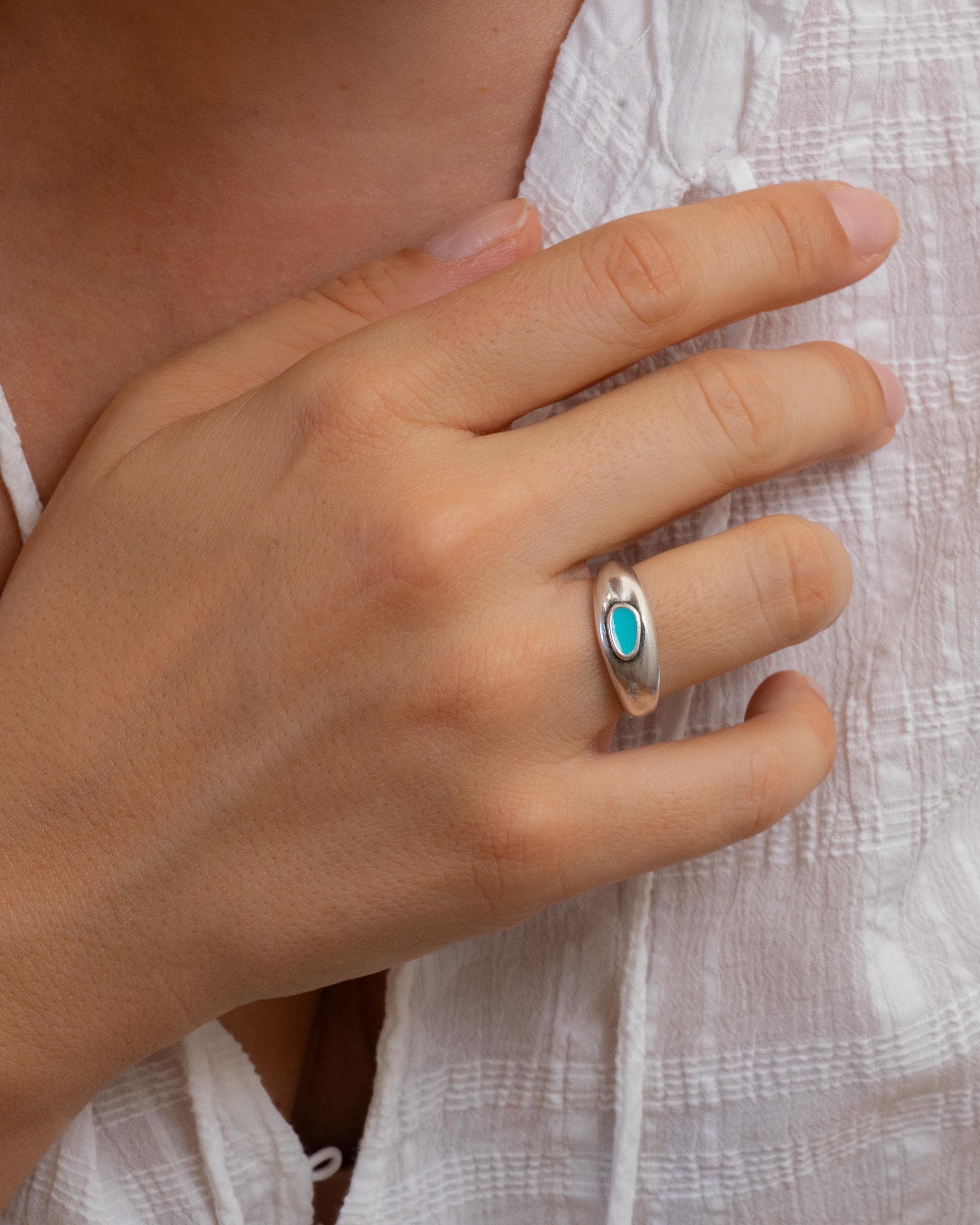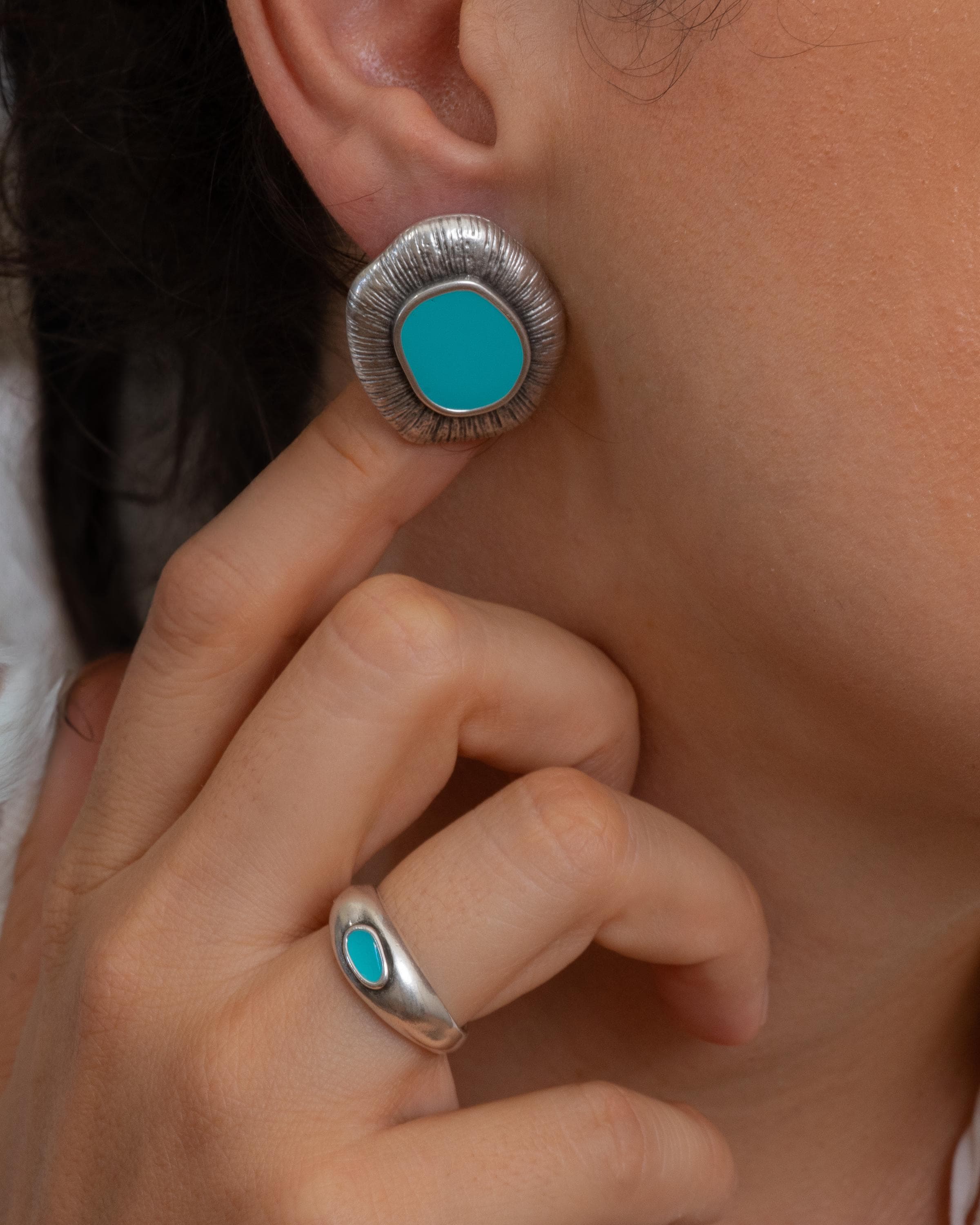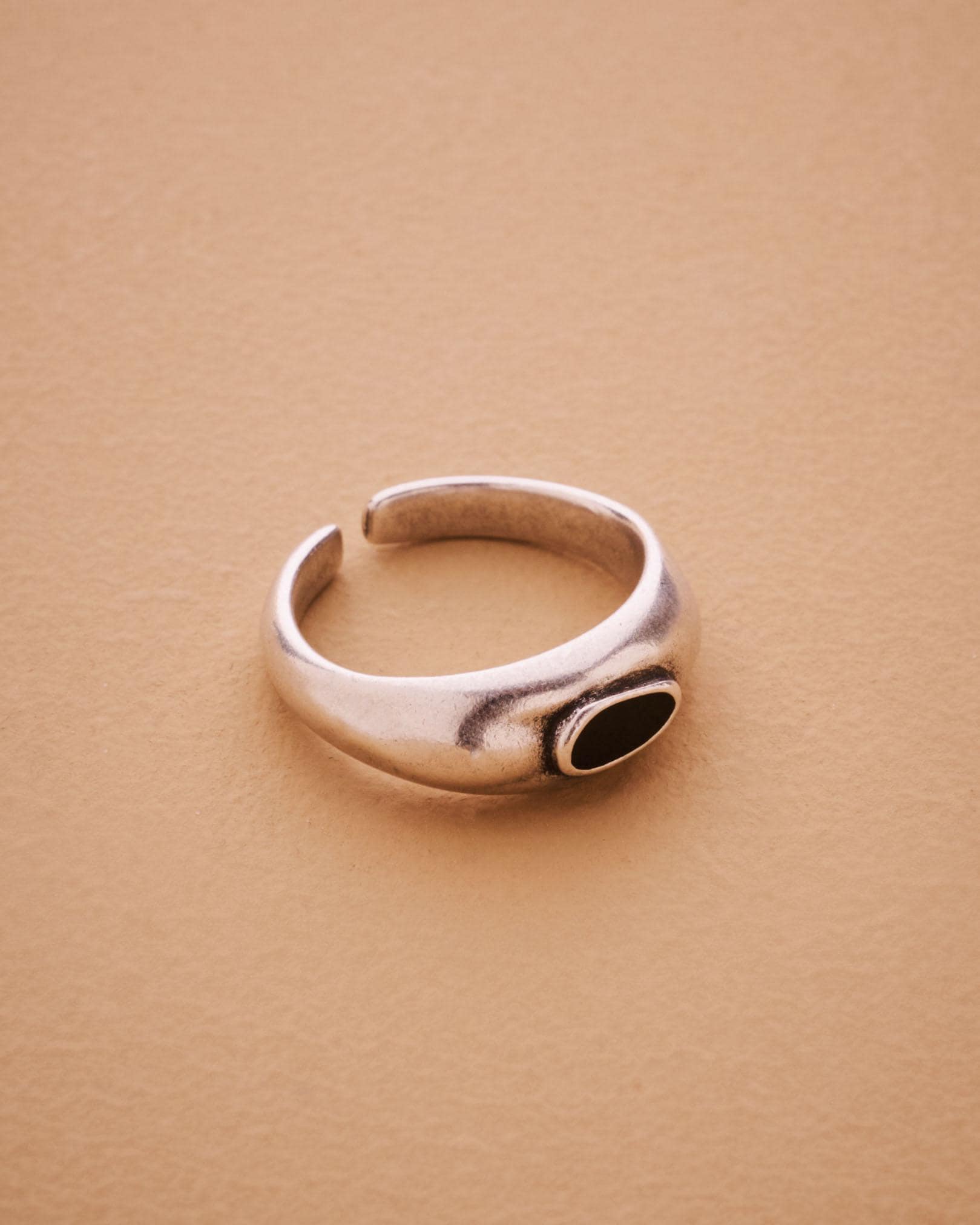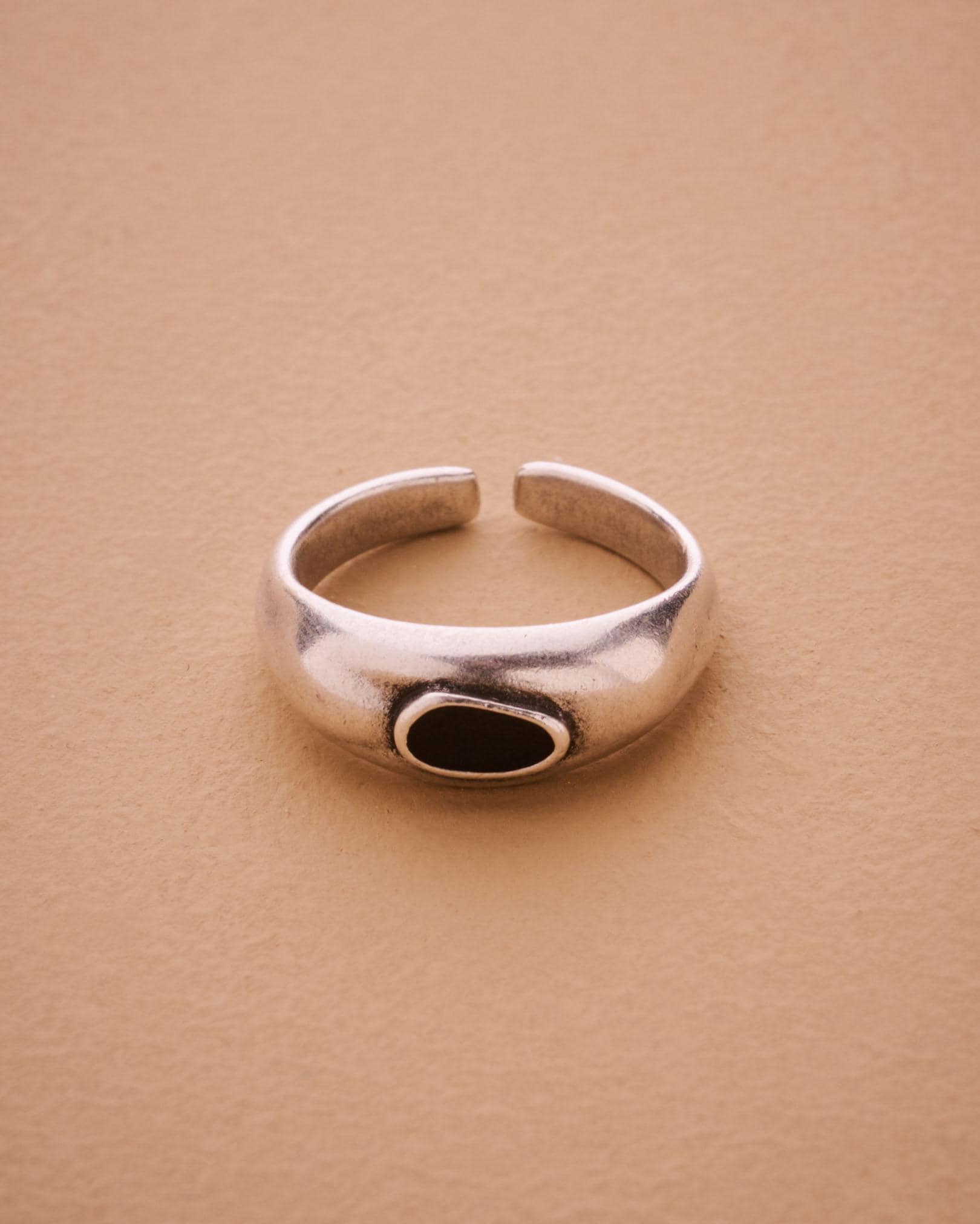 Sculptural, bold, and made to stand out—this silver-toned adjustable ring features a curved open design with two contrasting enamel stone accents: vibrant turquoise and deep black. Crafted from high-quality pewter with a solid, chunky feel, this piece merges modern curves with retro flair. It’s the perfect finishing touch for bold, expressive styling—day or night.